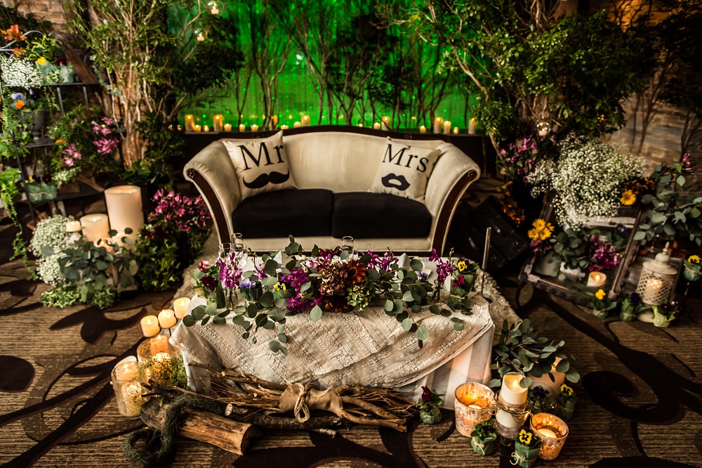 ソファまわりのアレンジをお2人の好きなものや結婚式のテーマにあわせてオシャレに装飾できたり、