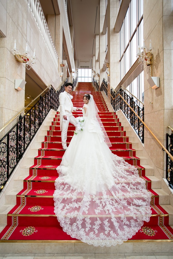 当館では赤のバージンロードや大階段での撮影が映えスポット( *´艸`)♡