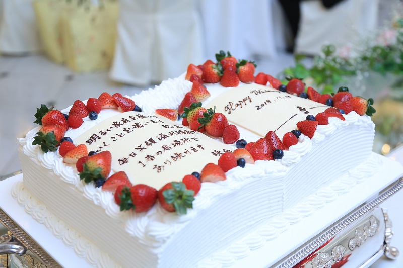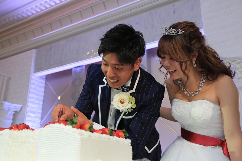 今ではほとんどの新郎新婦がさせるセレモニーケーキ入刀(^-^)