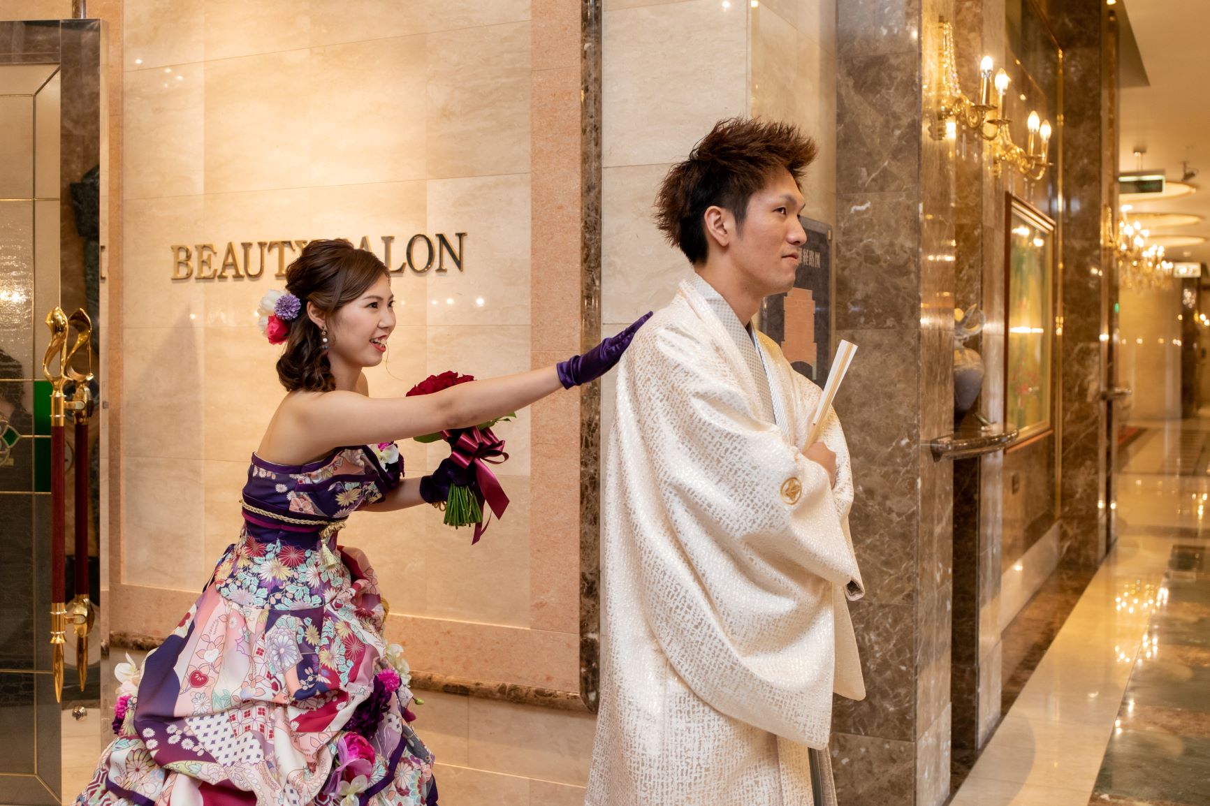和装ではなく、和柄のドレスにお色直しをされました♡