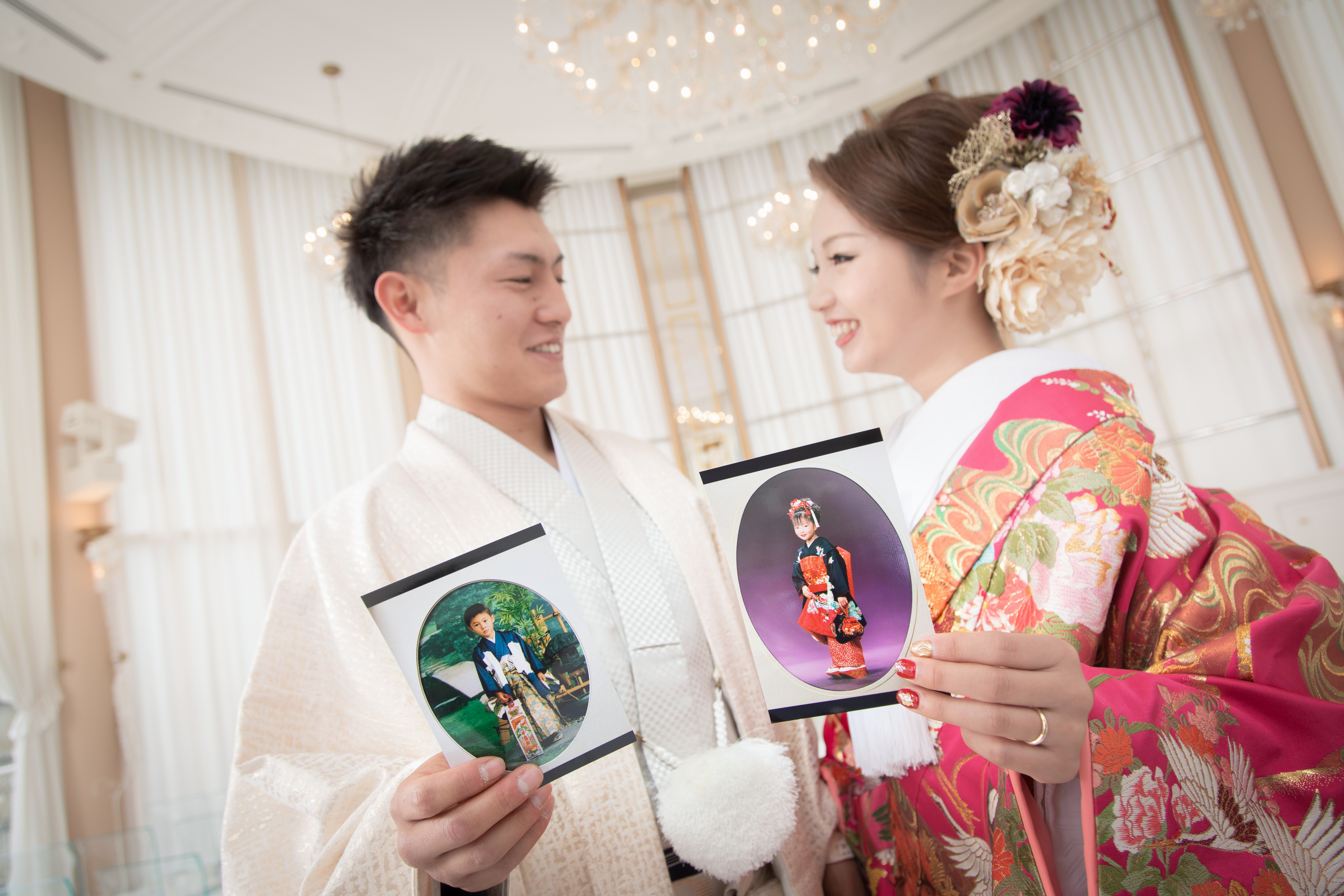 そんな、小さい頃に和装をお召しになって撮ったお写真と一緒に撮影をされたお2人(^^)/