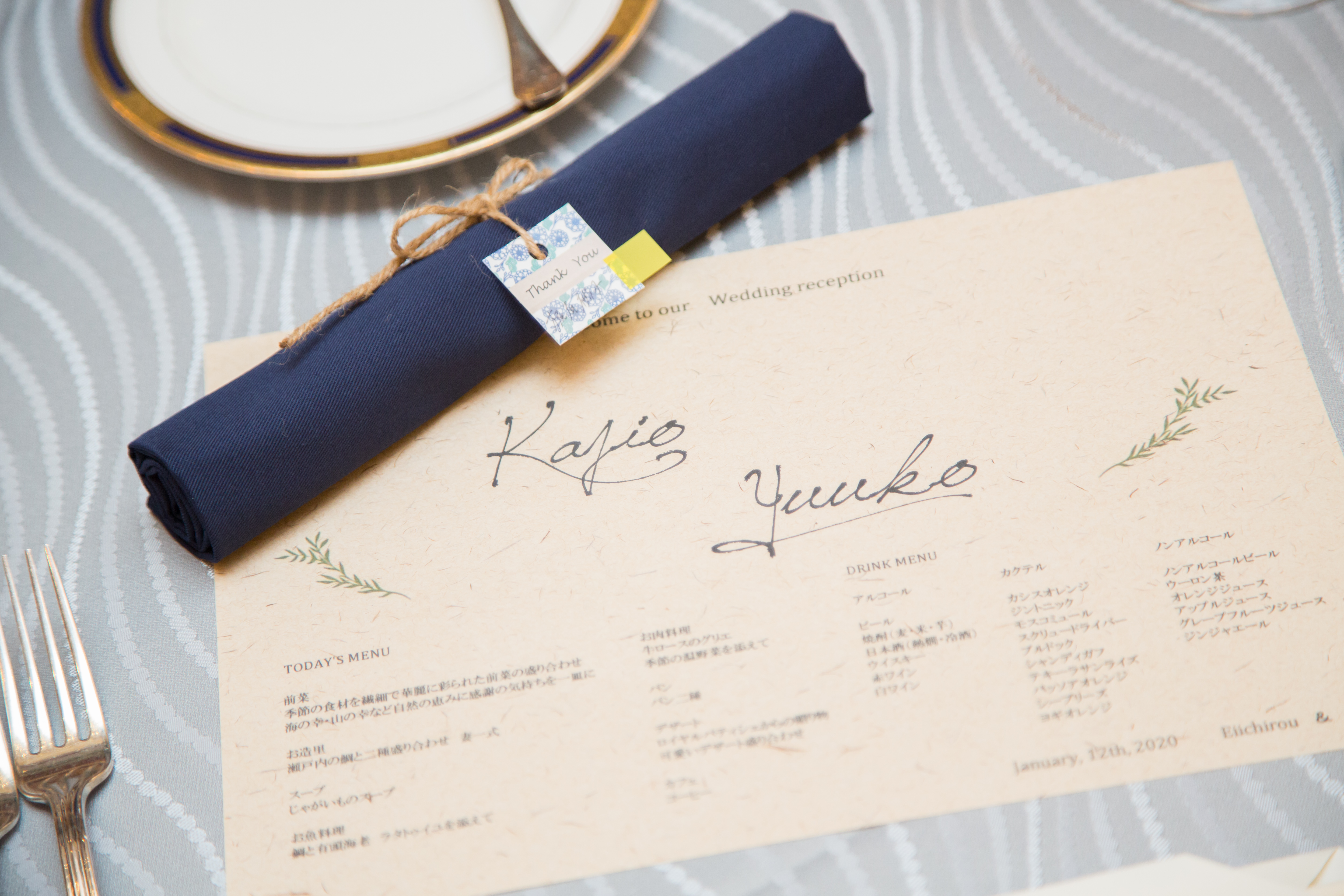 会場コーディネートの一部として、ナフキンをブルー系にされる方もいらっしゃいます♪