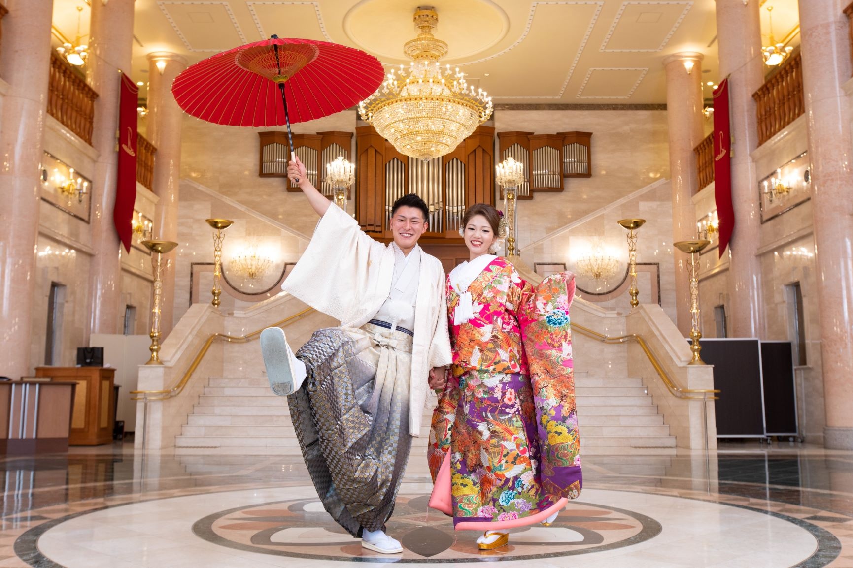 そこで当式場では、和装の際に「番傘」をご用意しております(^^)/