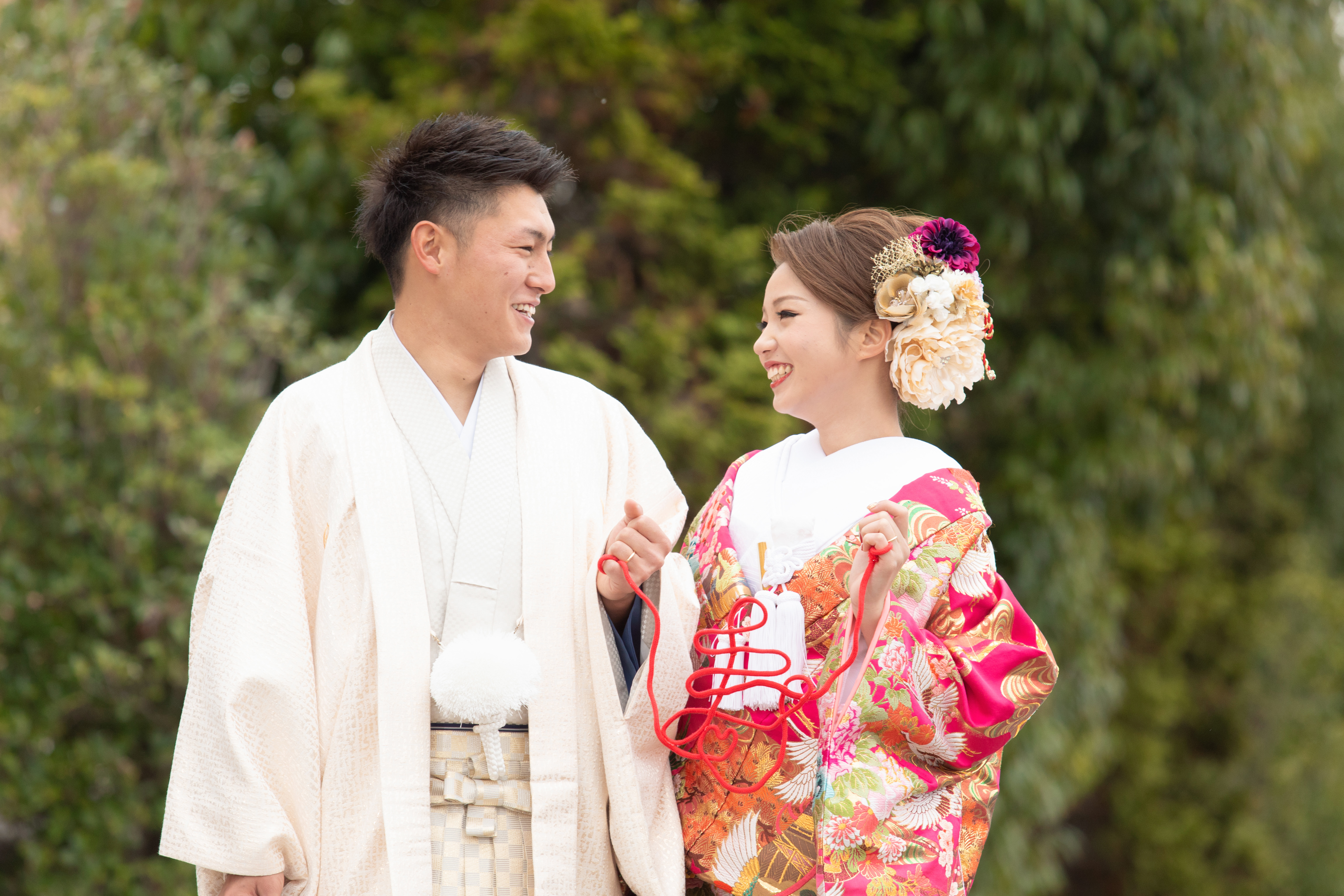 和装での前撮りで「寿」の文字と一緒に撮影したり