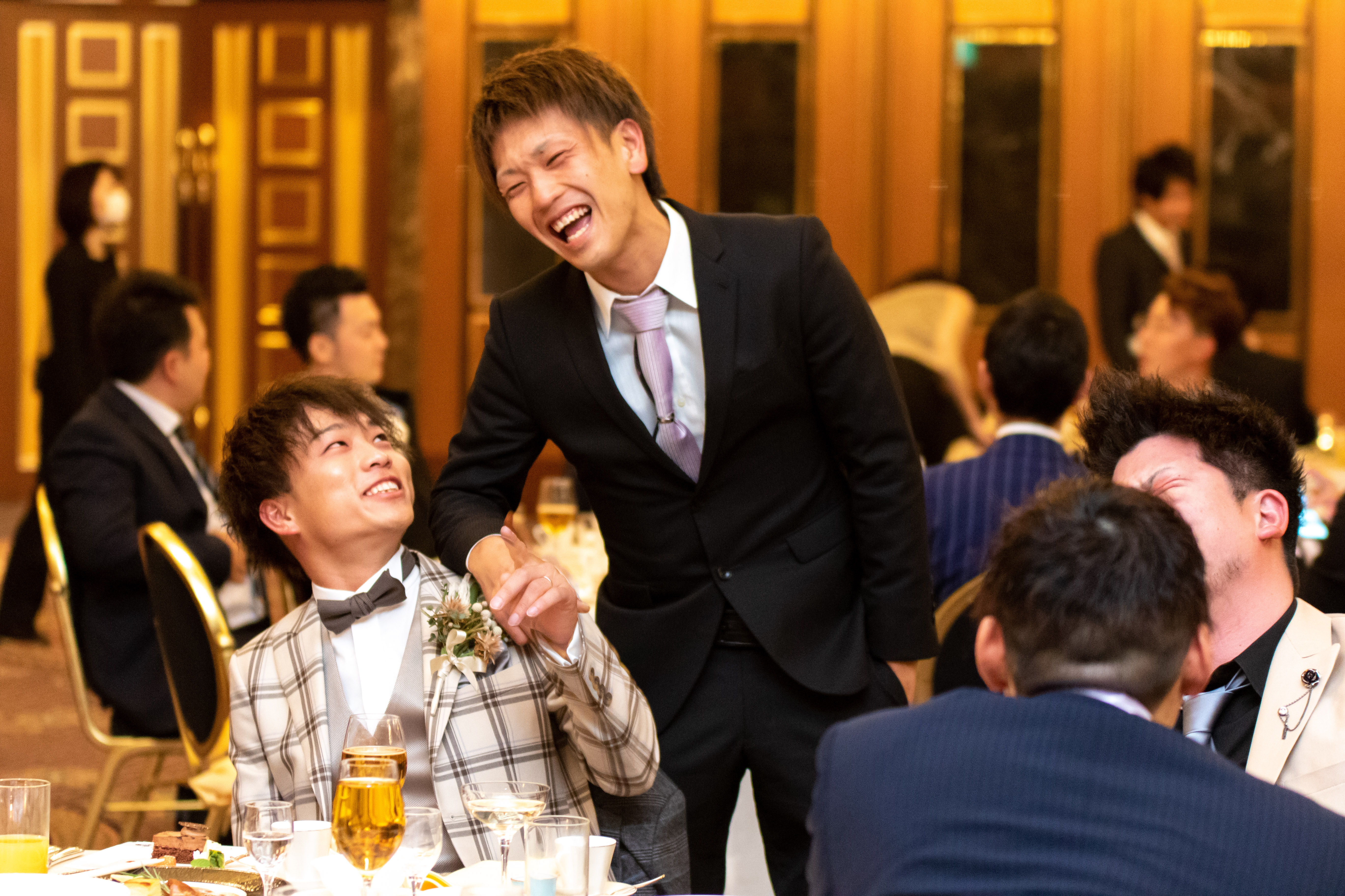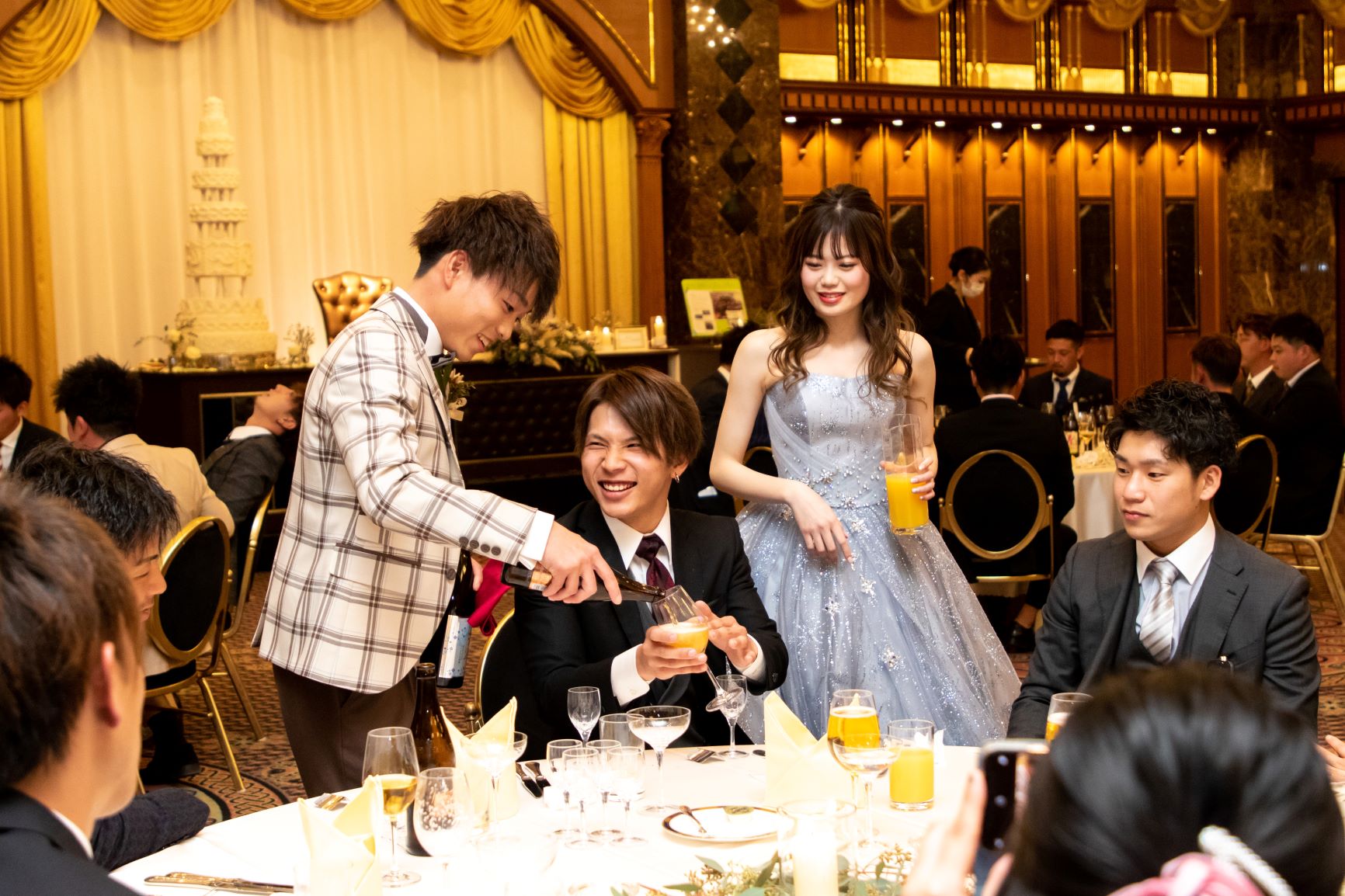 例えば、乾杯後すぐのお時間ですとゲストの皆様にメインテーブルまでお越し頂き