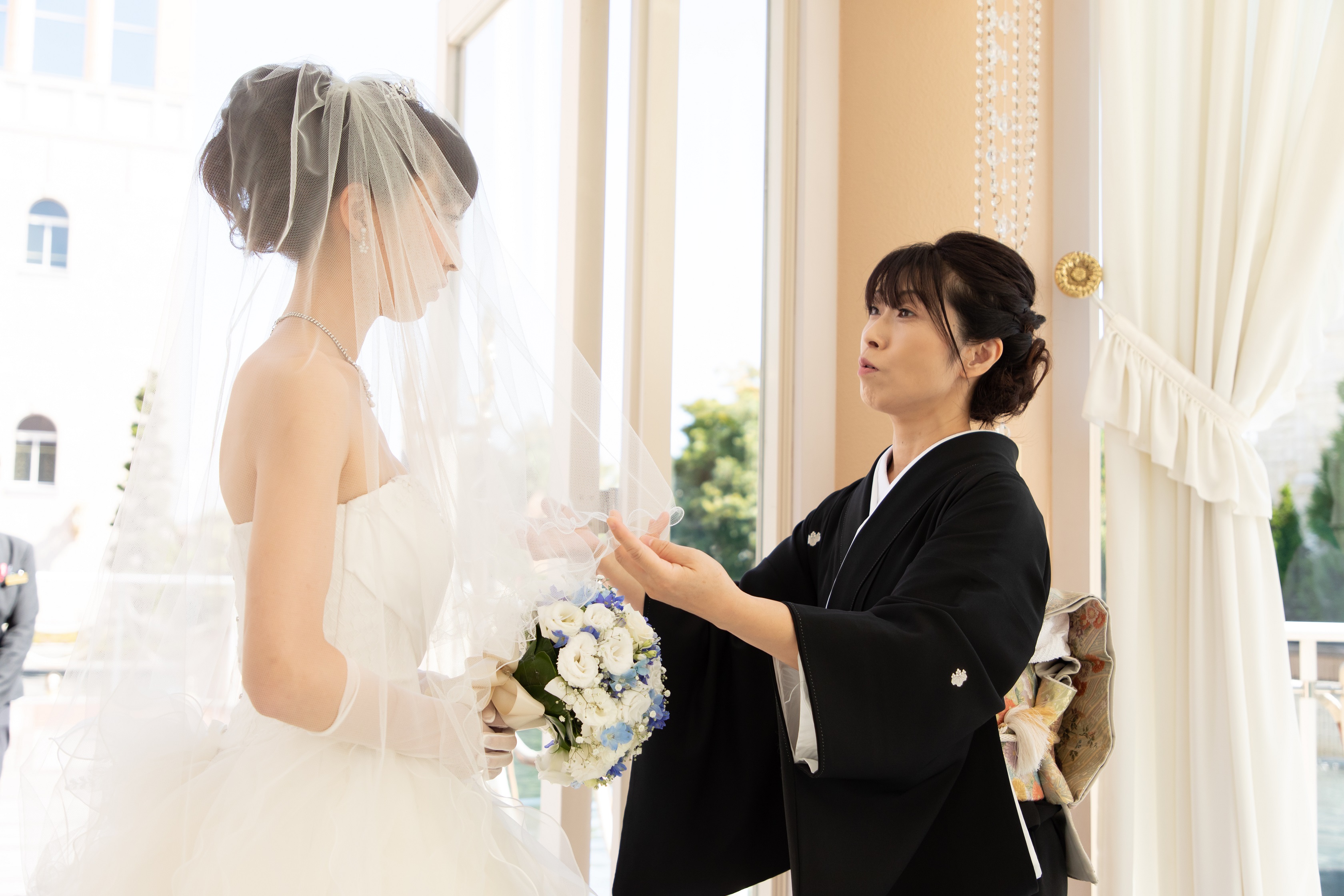 新婦の顔を覆うベールは新郎新婦様お二人の間にある