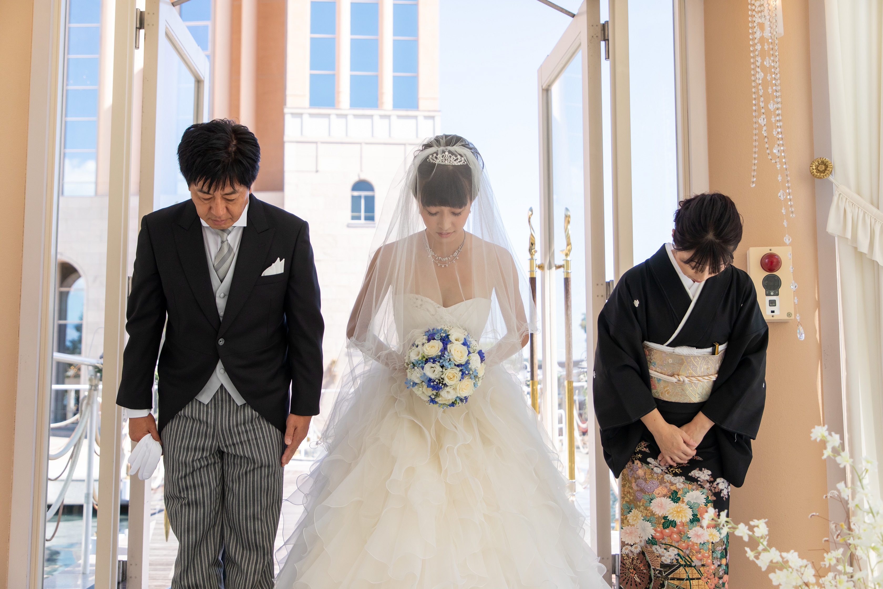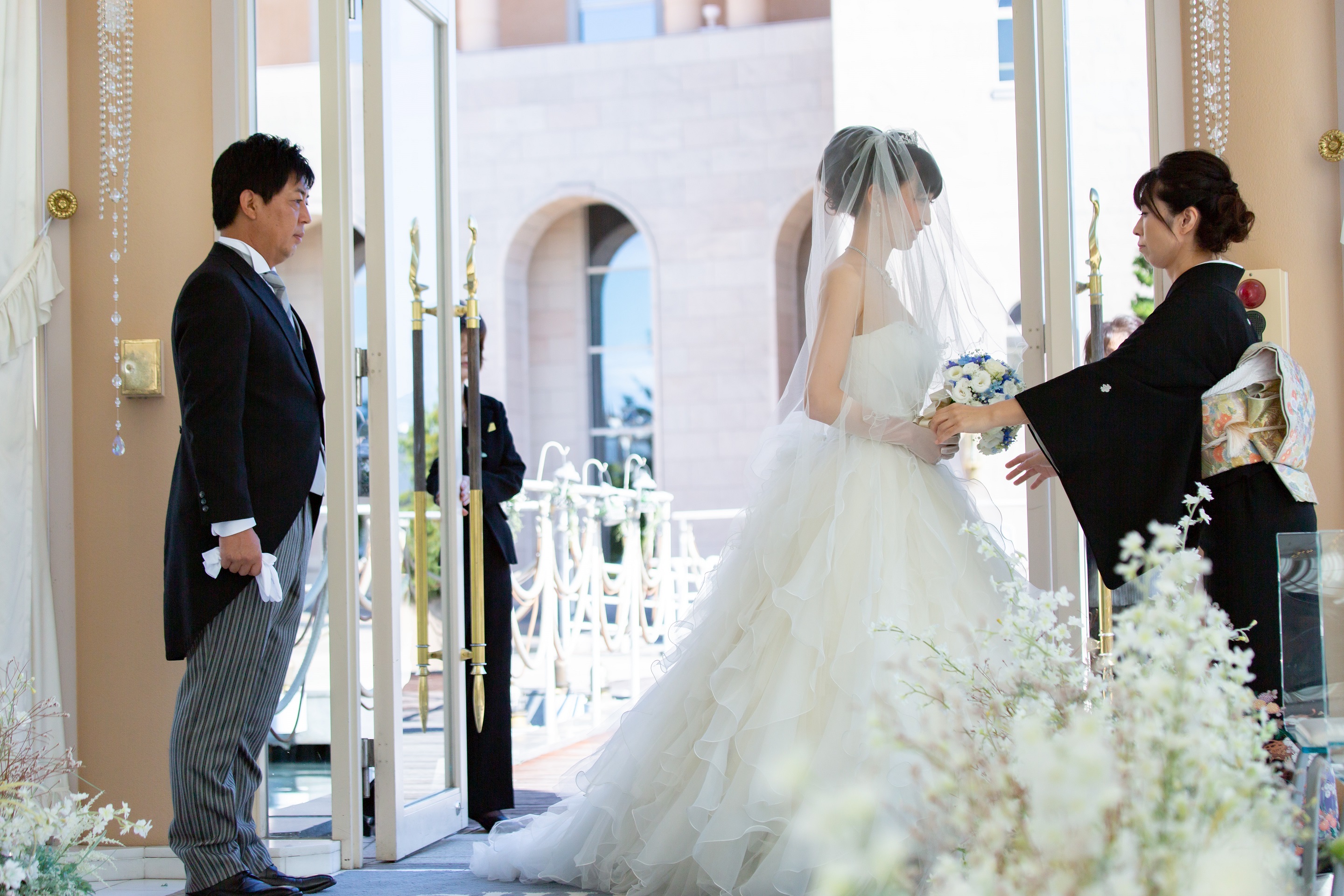 挙式会場の扉口でお母様が待機されております