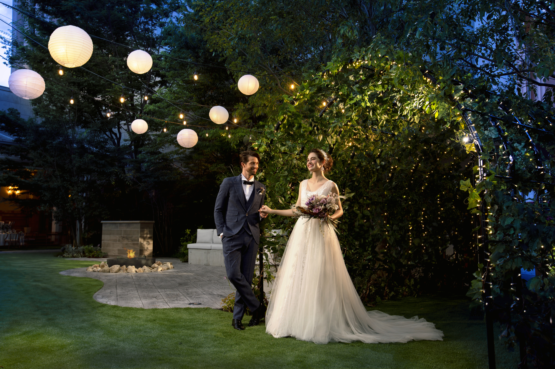 ガーデンのトンネルにはアーチ状にライトが☆彡