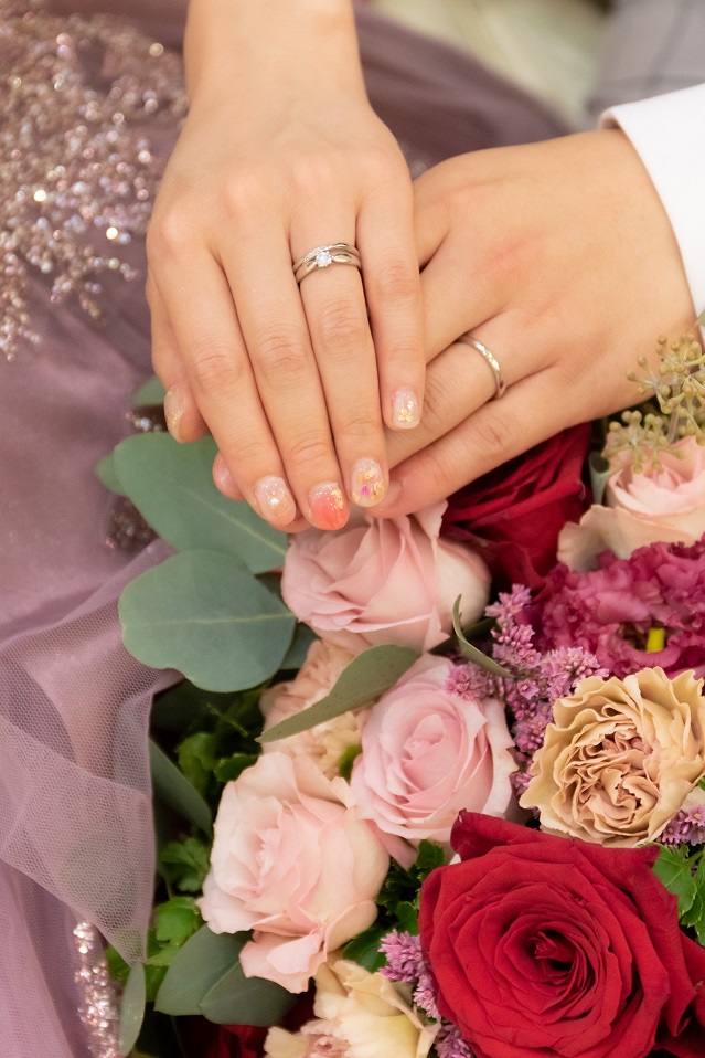 永遠の愛を誓ってお互いの指にはめる結婚指輪に