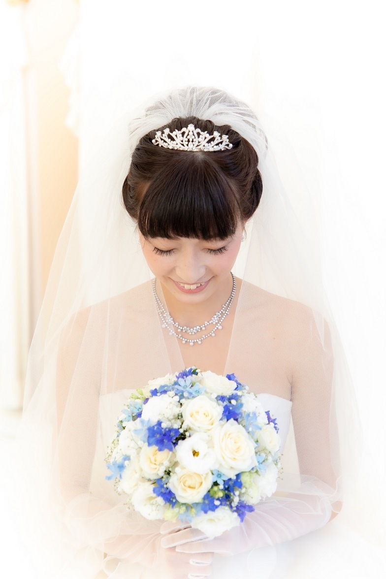 ブーケやイヤリングなどの小物でブルーを取り入れる事がございます。