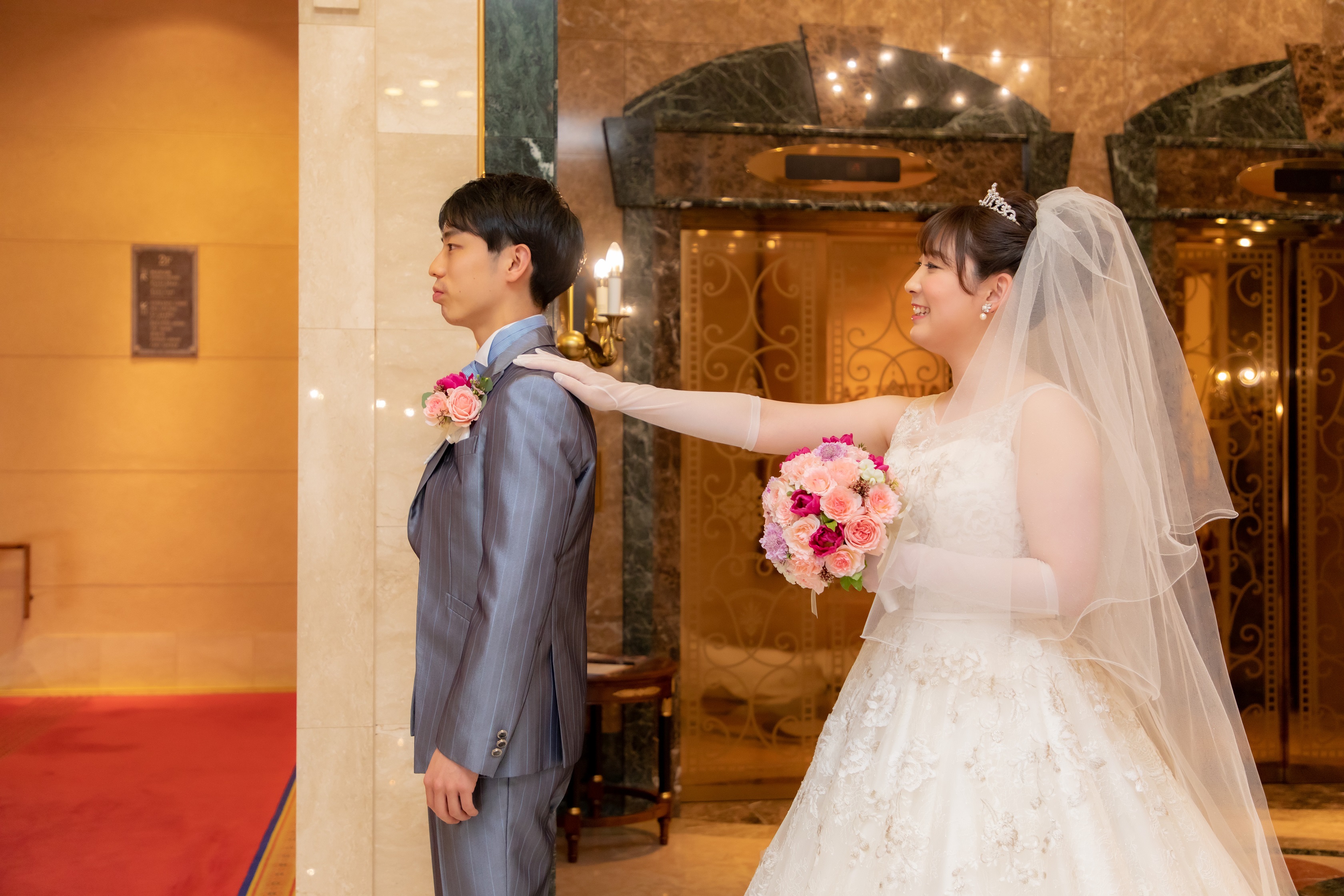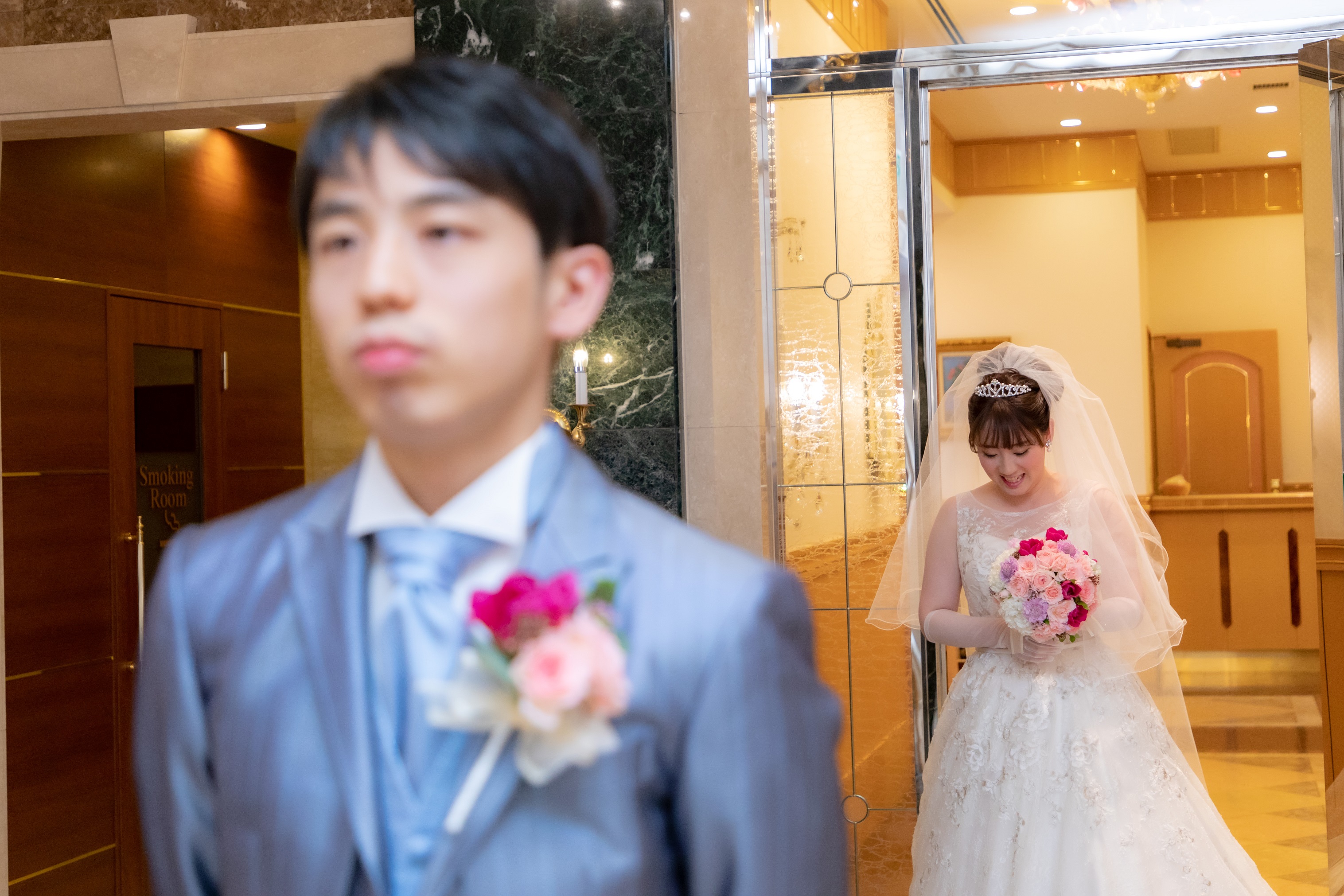 新婦様は後ろからそっと現れます。