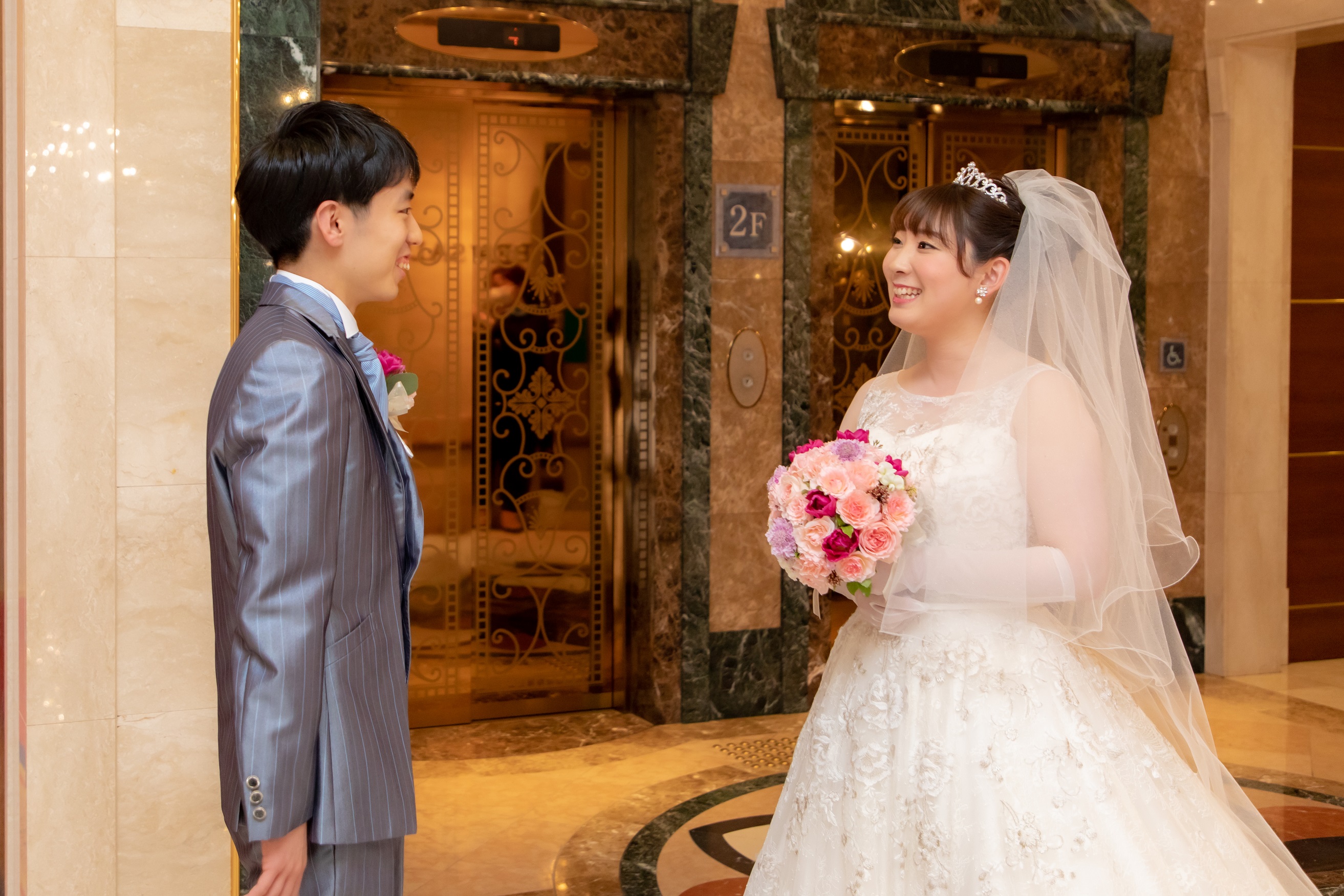 ドレス姿の新婦様をご覧になって「かわいいね、似合ってるね」