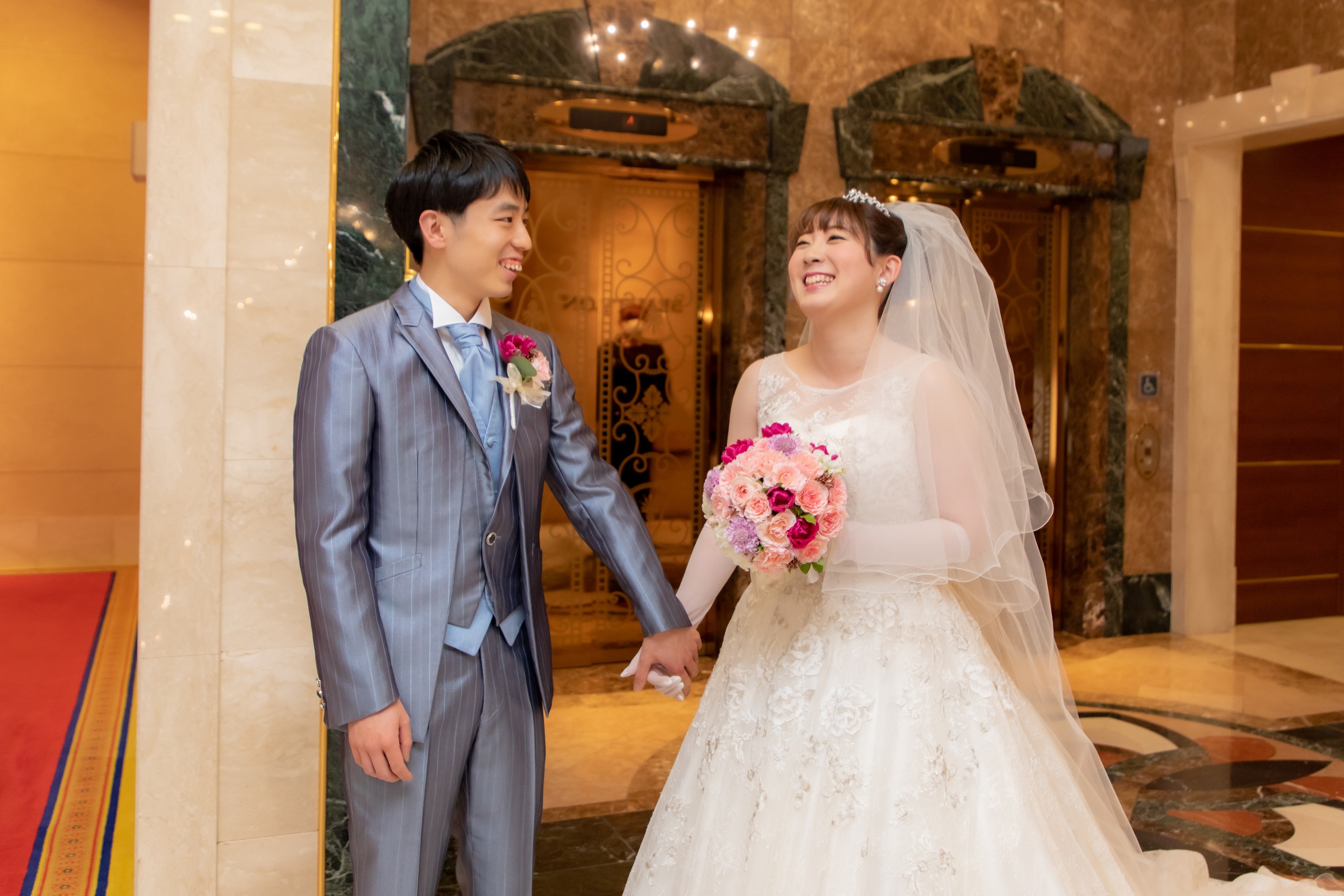 自然と手を取ってゲストの皆様が待つエントランスへ出発です♡