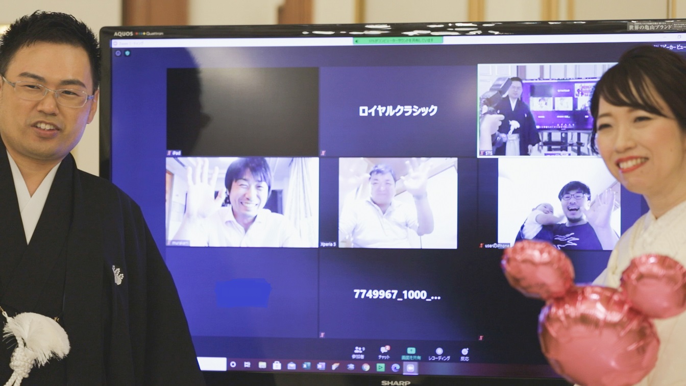 御披露宴中の新郎新婦様がオンラインで繋がることができました。