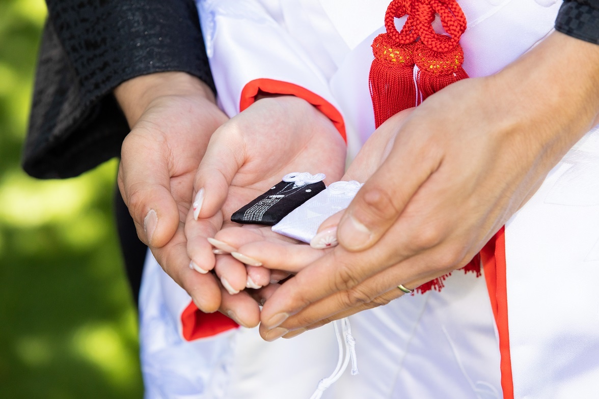 新郎様の黒色の羽織袴と新婦様の白無垢がよくお似合いです☆彡