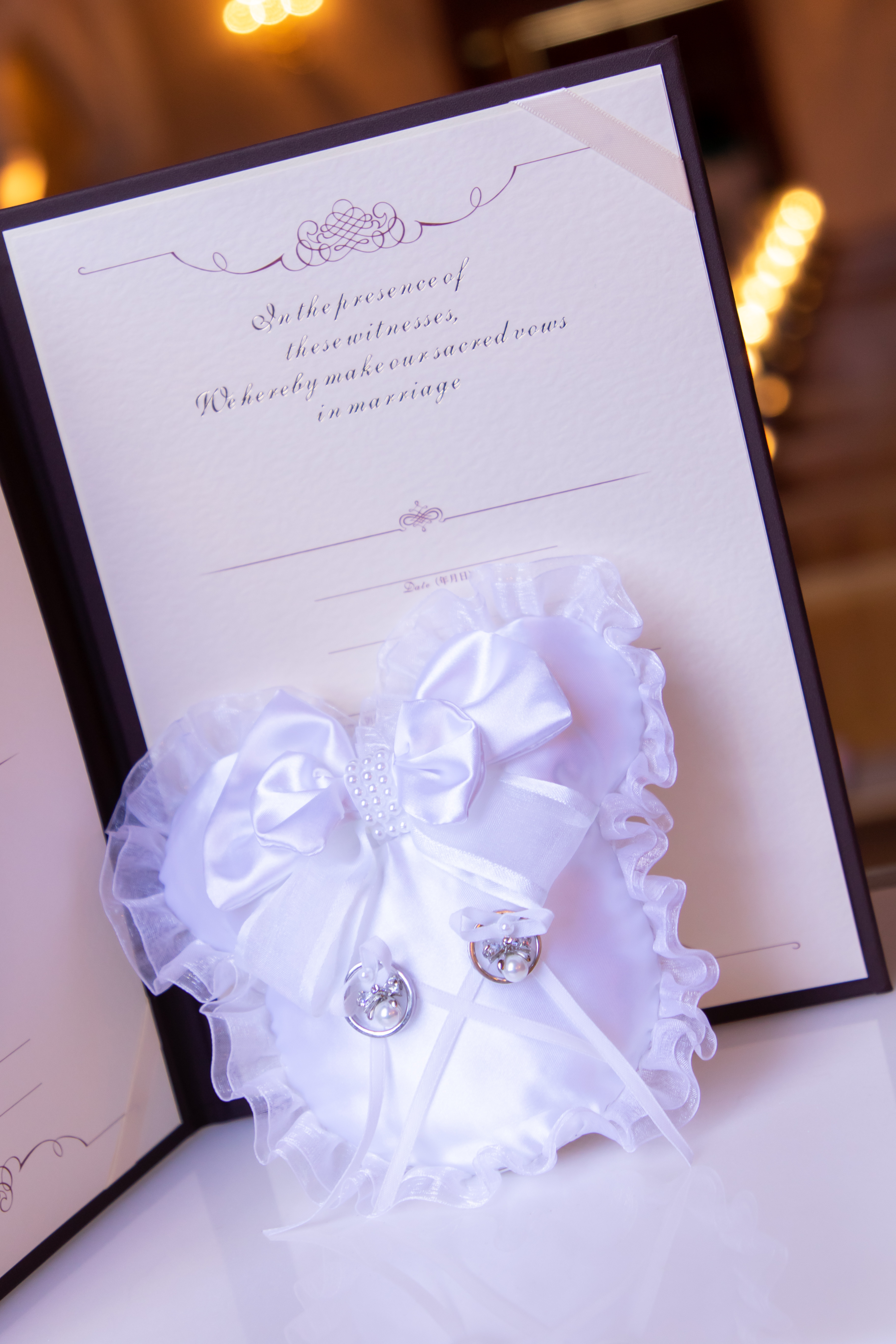 この上にご結婚指輪をのせ 指輪の交換をして頂きます
