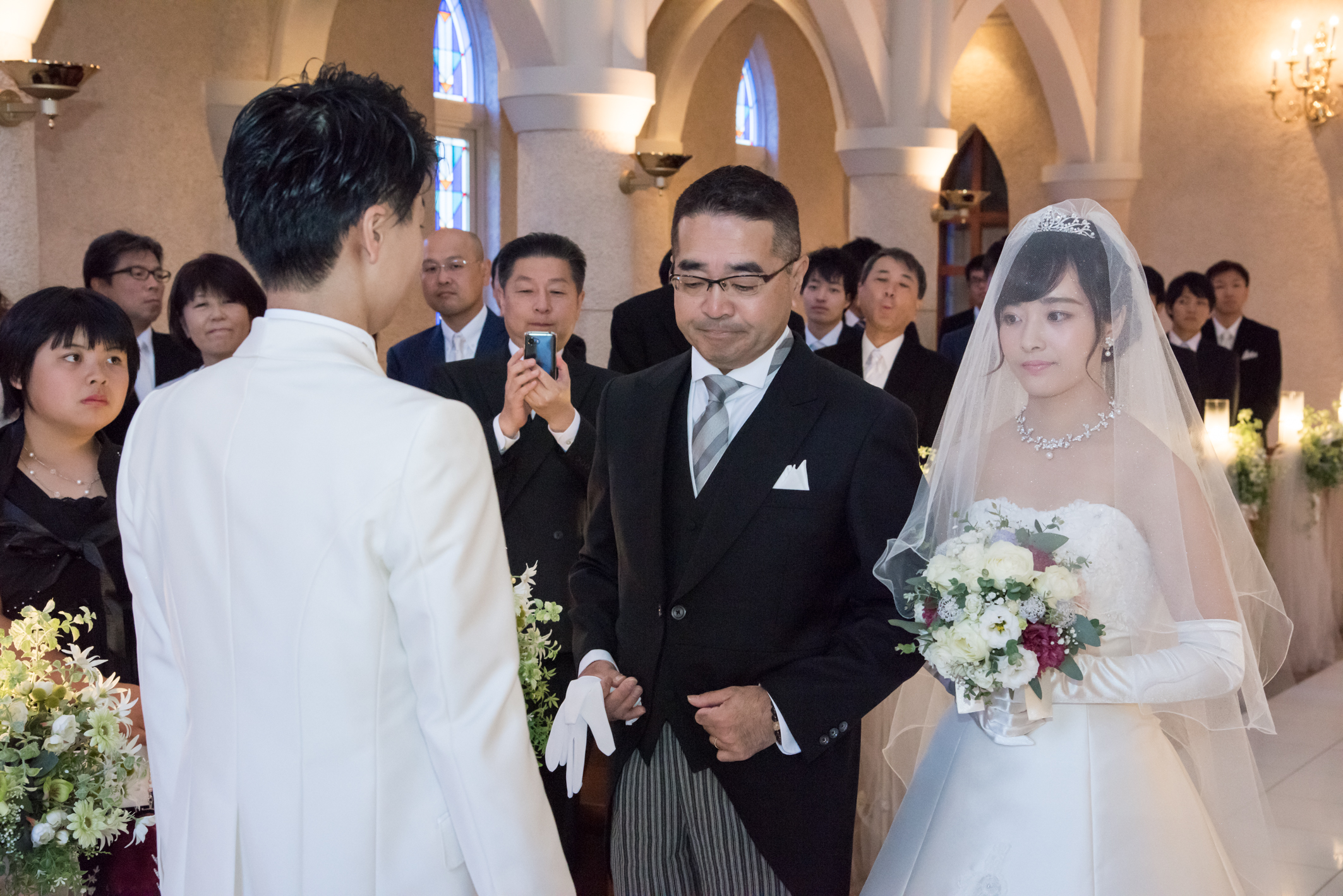 バージンロードを一緒に歩かれるお父様へサプライズDVDを上映することが可能です