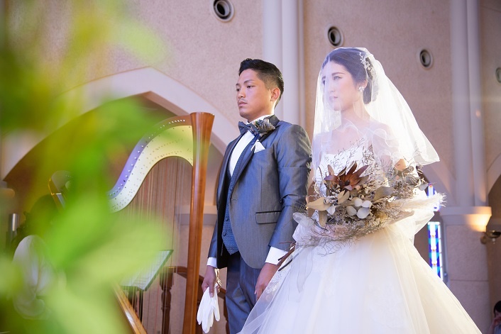 挙式入場の際 新婦様はお母様にベールダウンをして頂きます