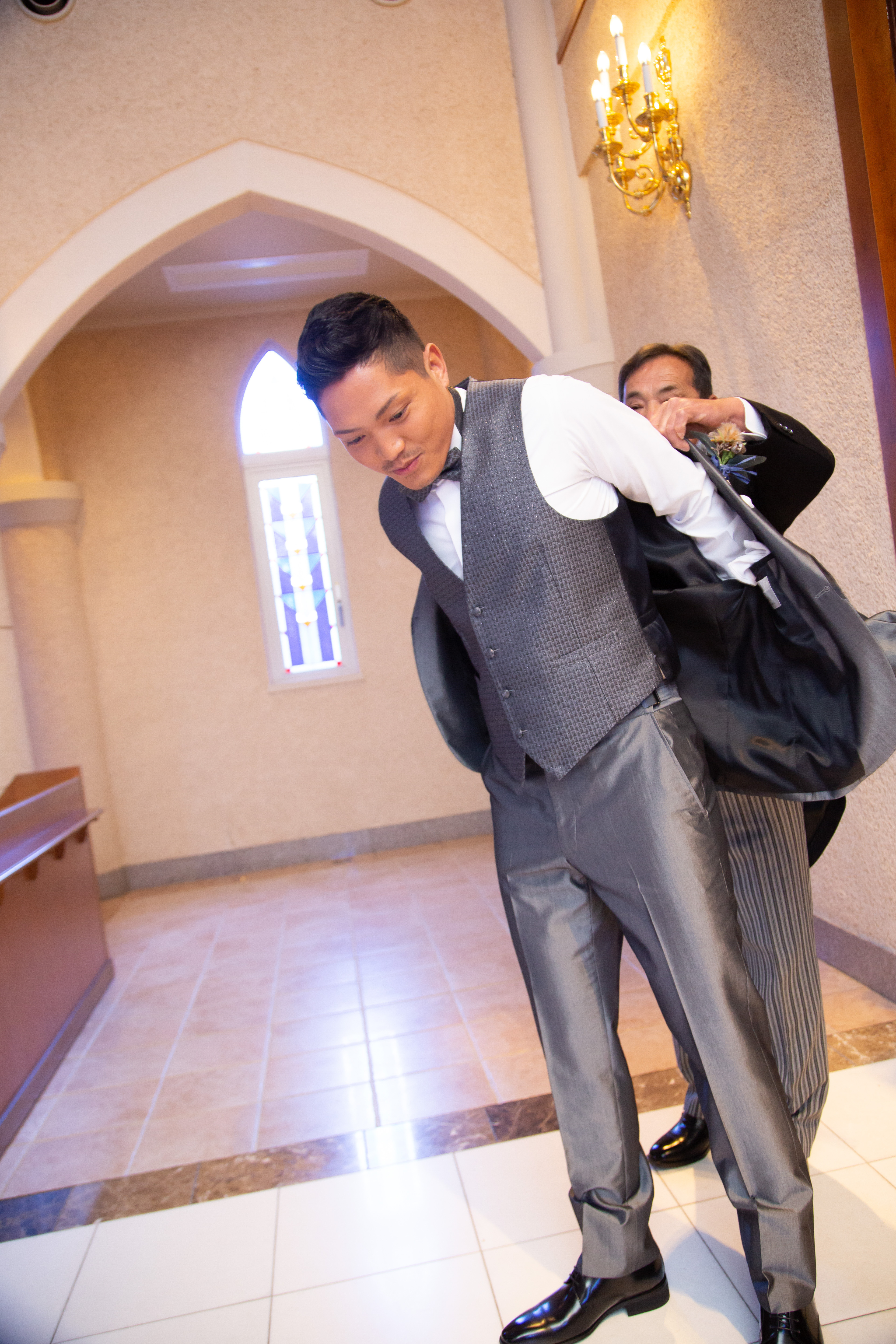 入場時お父様からジャケットを着せて頂く演出です