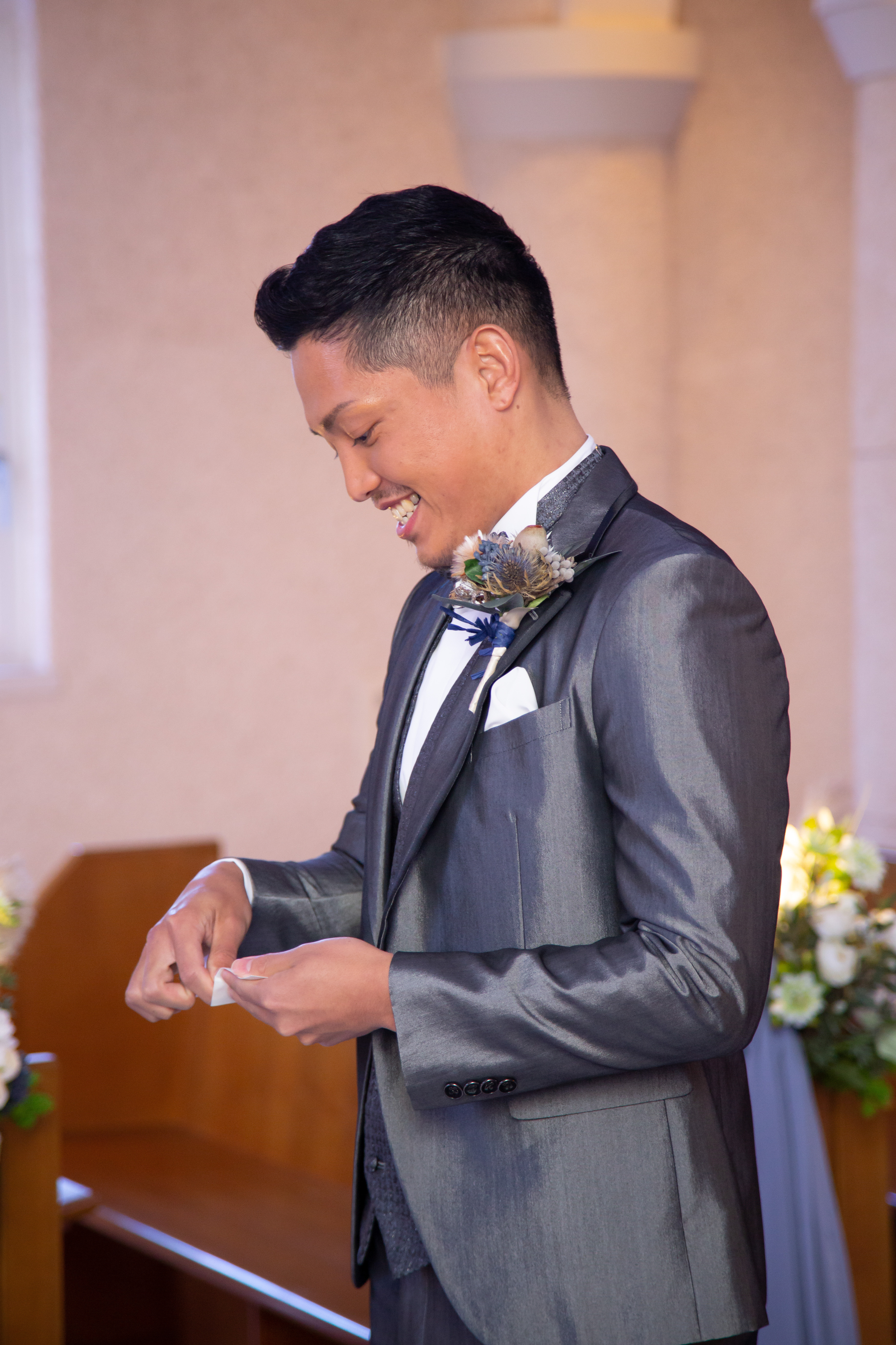 驚いたような新郎様と 嬉しそうな新婦様