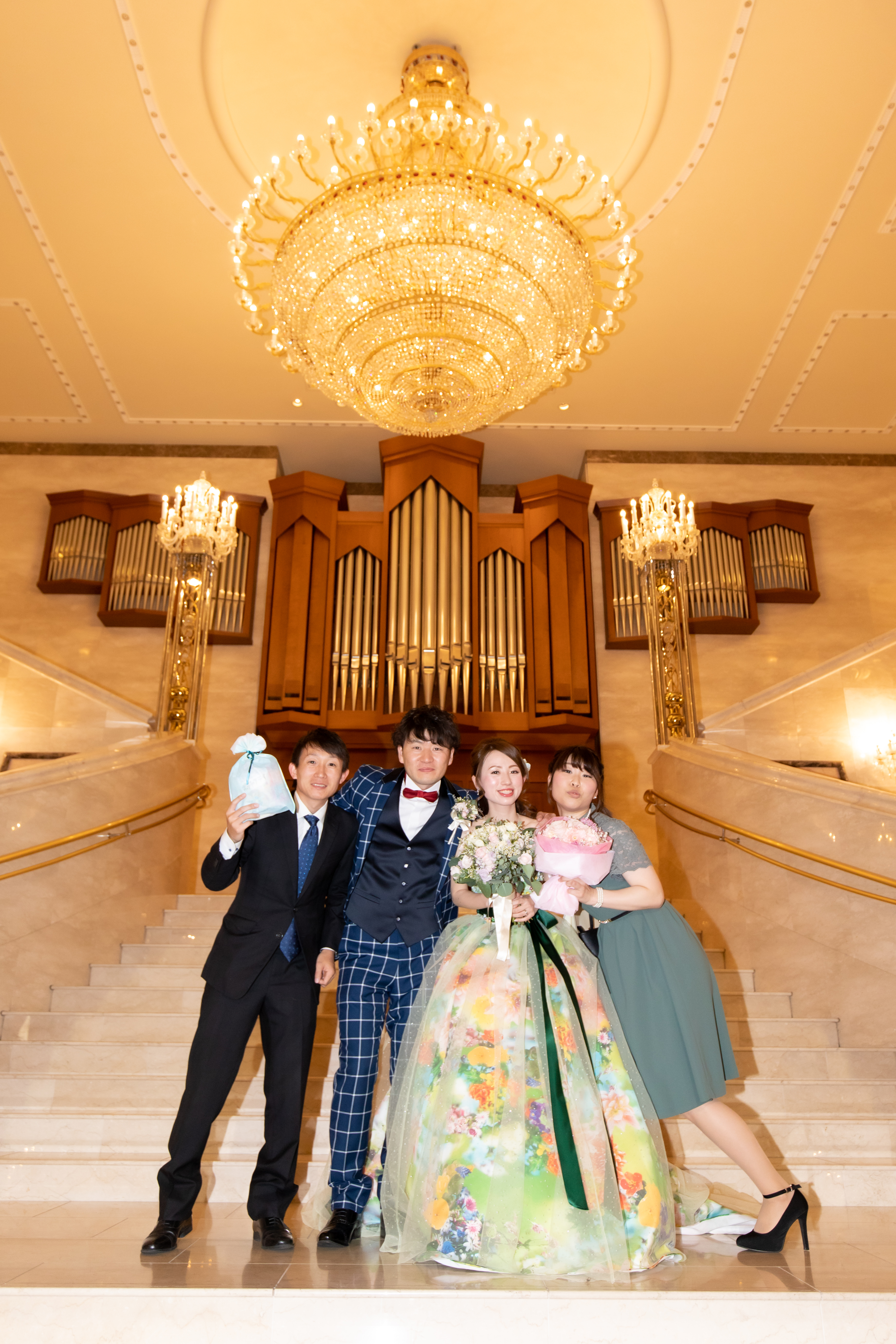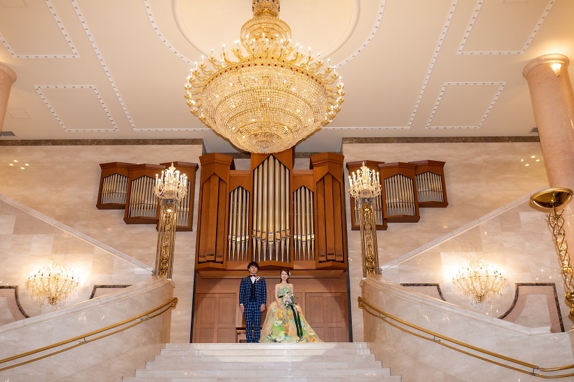 大きなシャンデリアとともに華やかな記念写真を残してみてはいかがでしょうか
