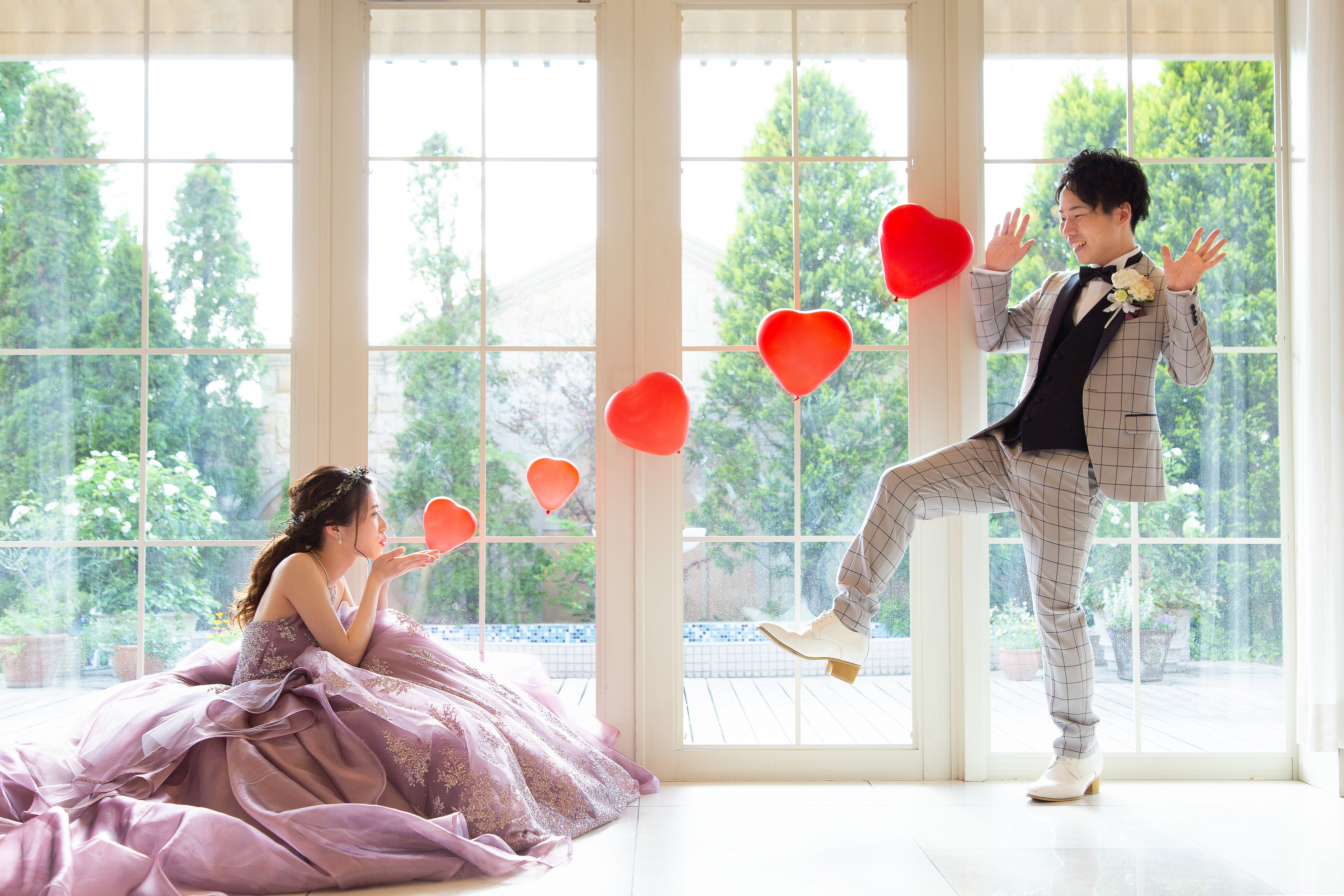 新郎新婦様のご希望で ハートの風船を使ったお写真
