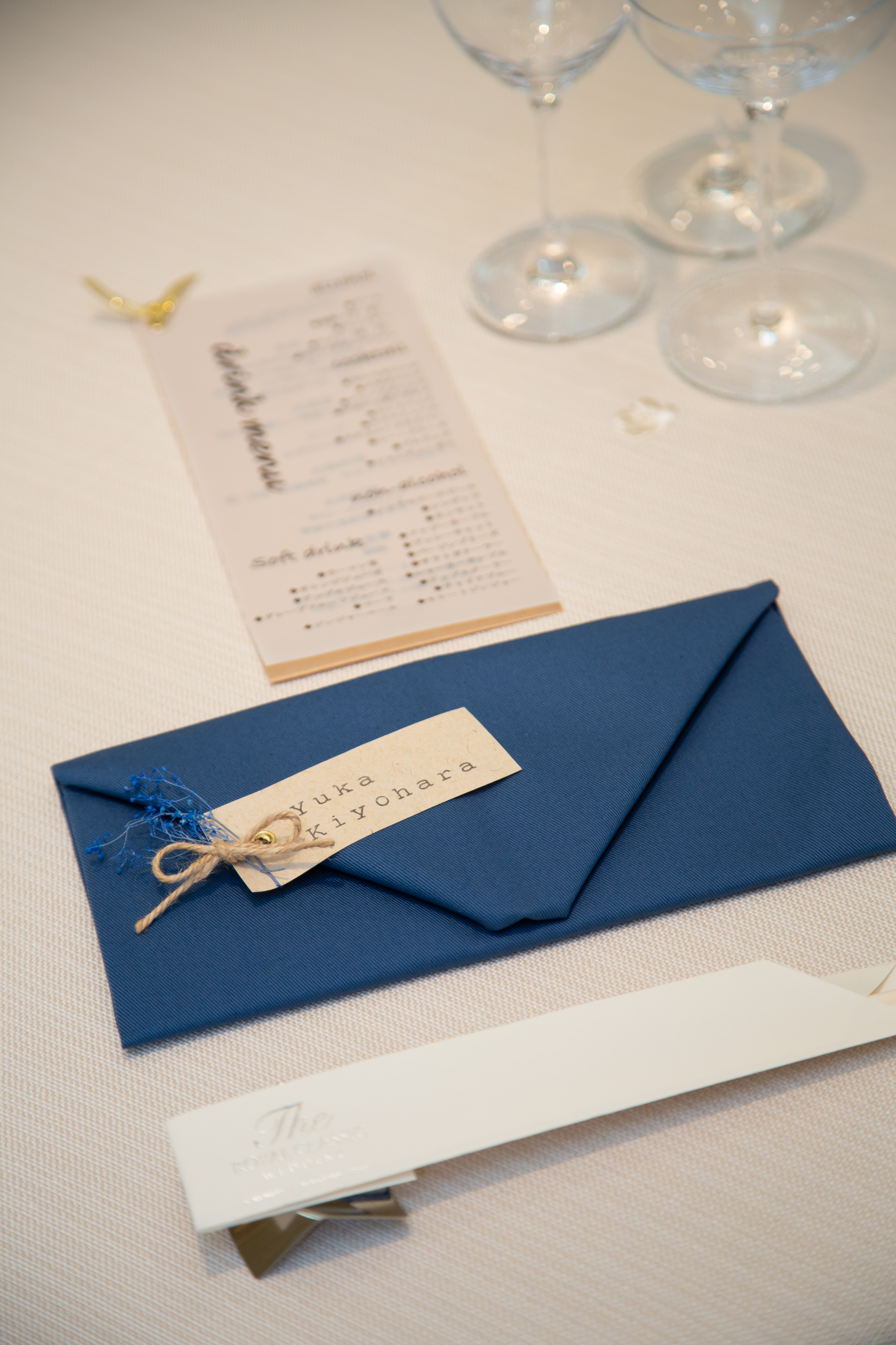 例えば ナフキンと席札を一緒に置くことで完成するコーディネートにしてみても♪