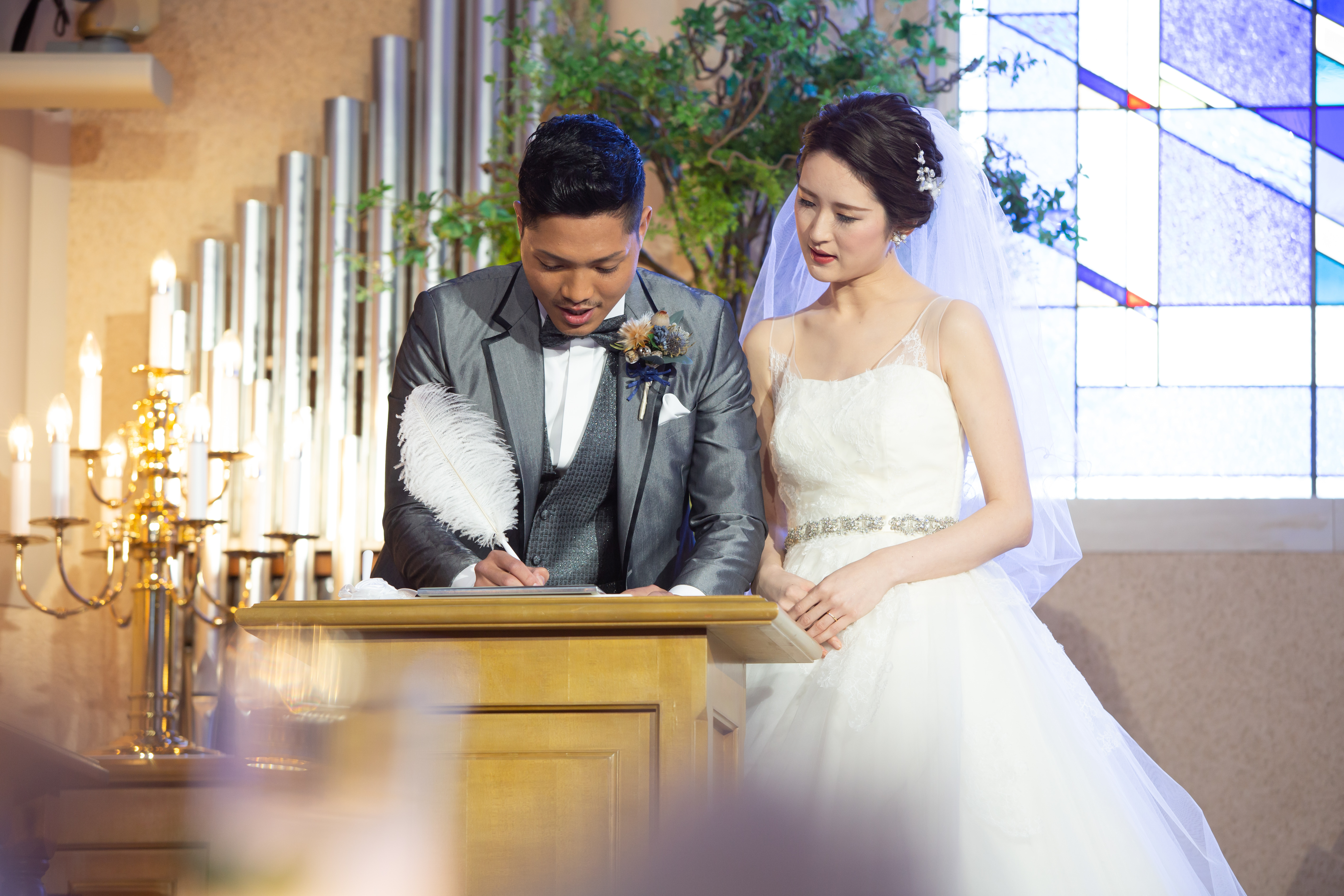 挙式で愛を誓い 指輪の交換をしたのち サインをします