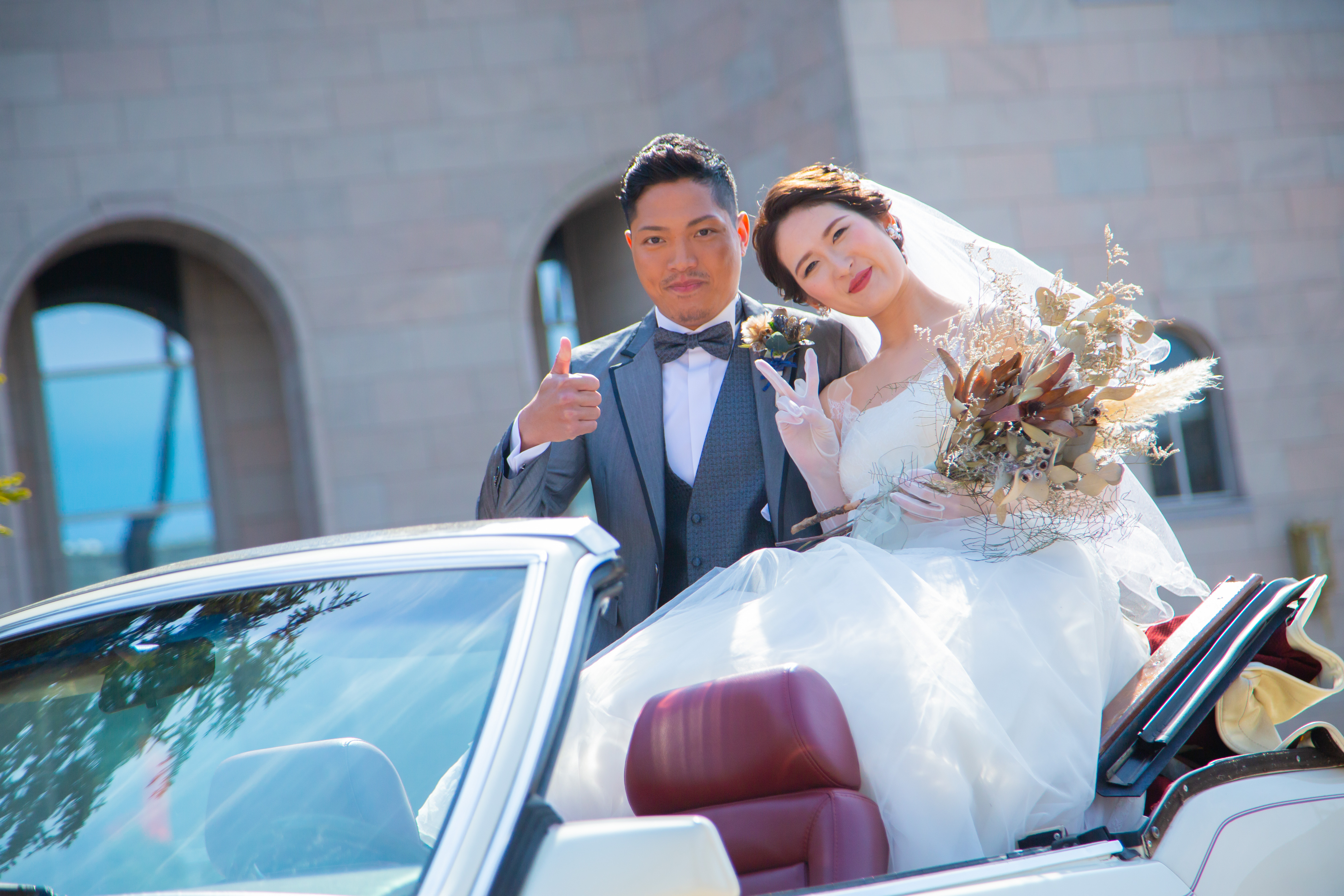 挙式の際は 洗礼された白やグレーのタキシードをお召しになる方が多く