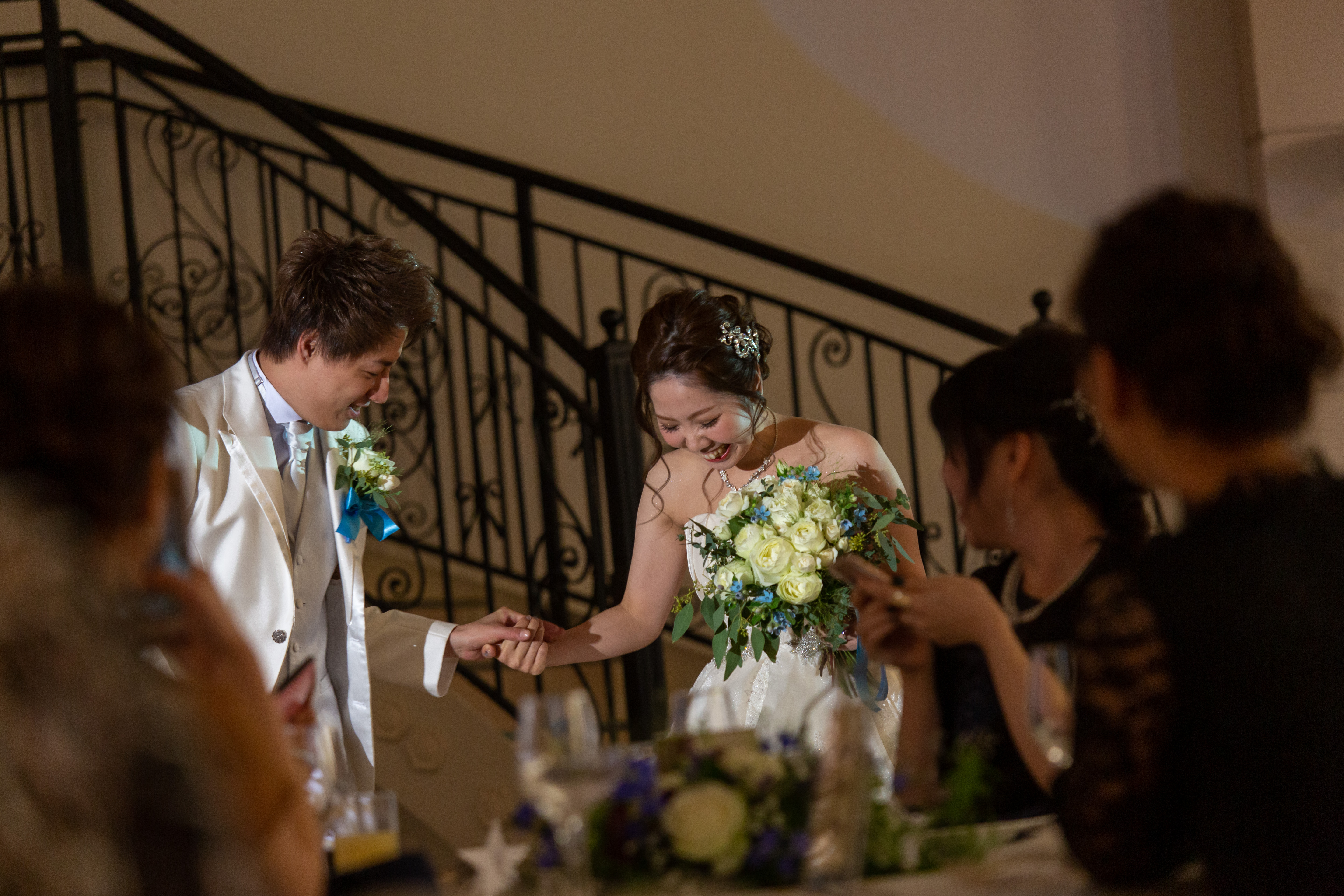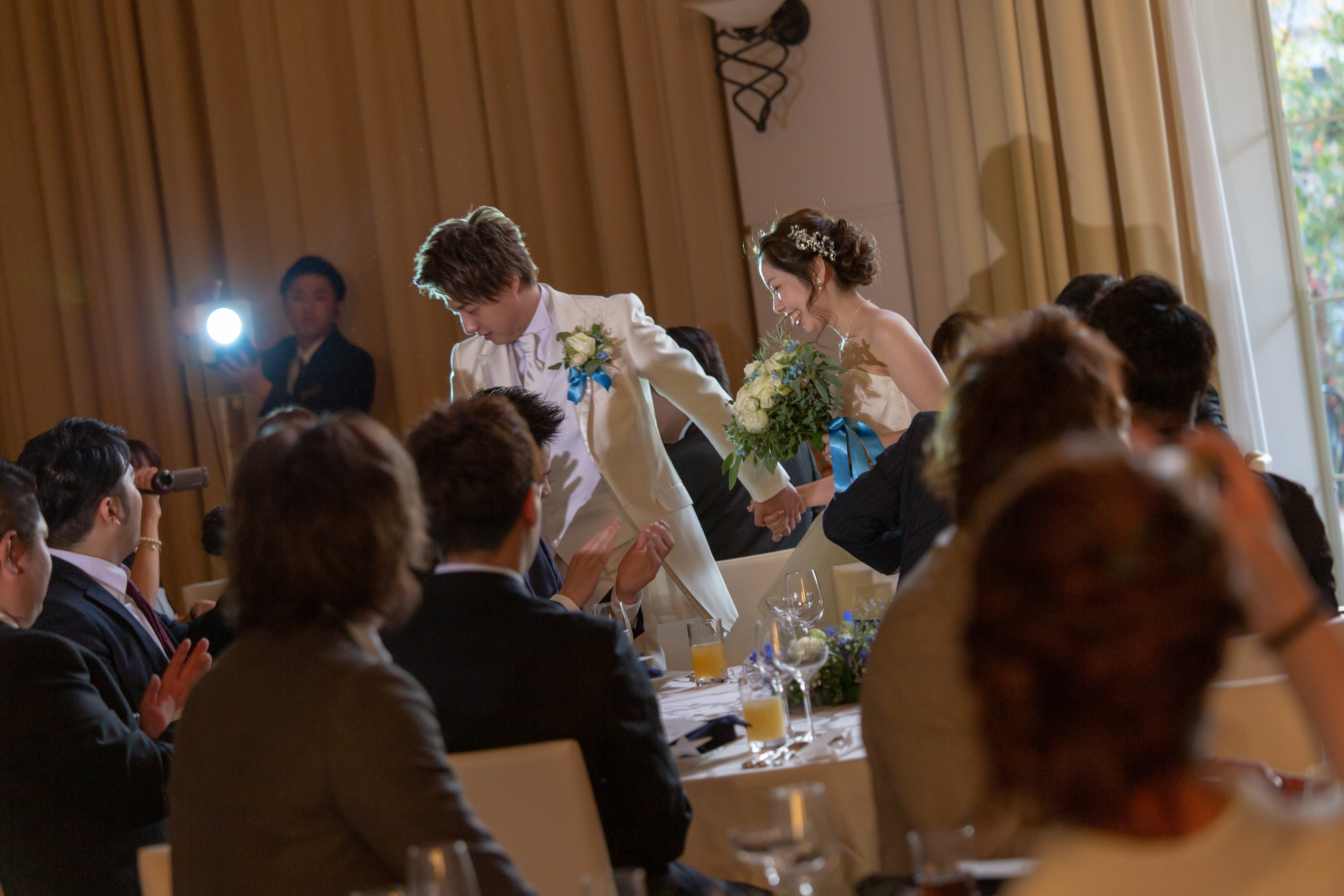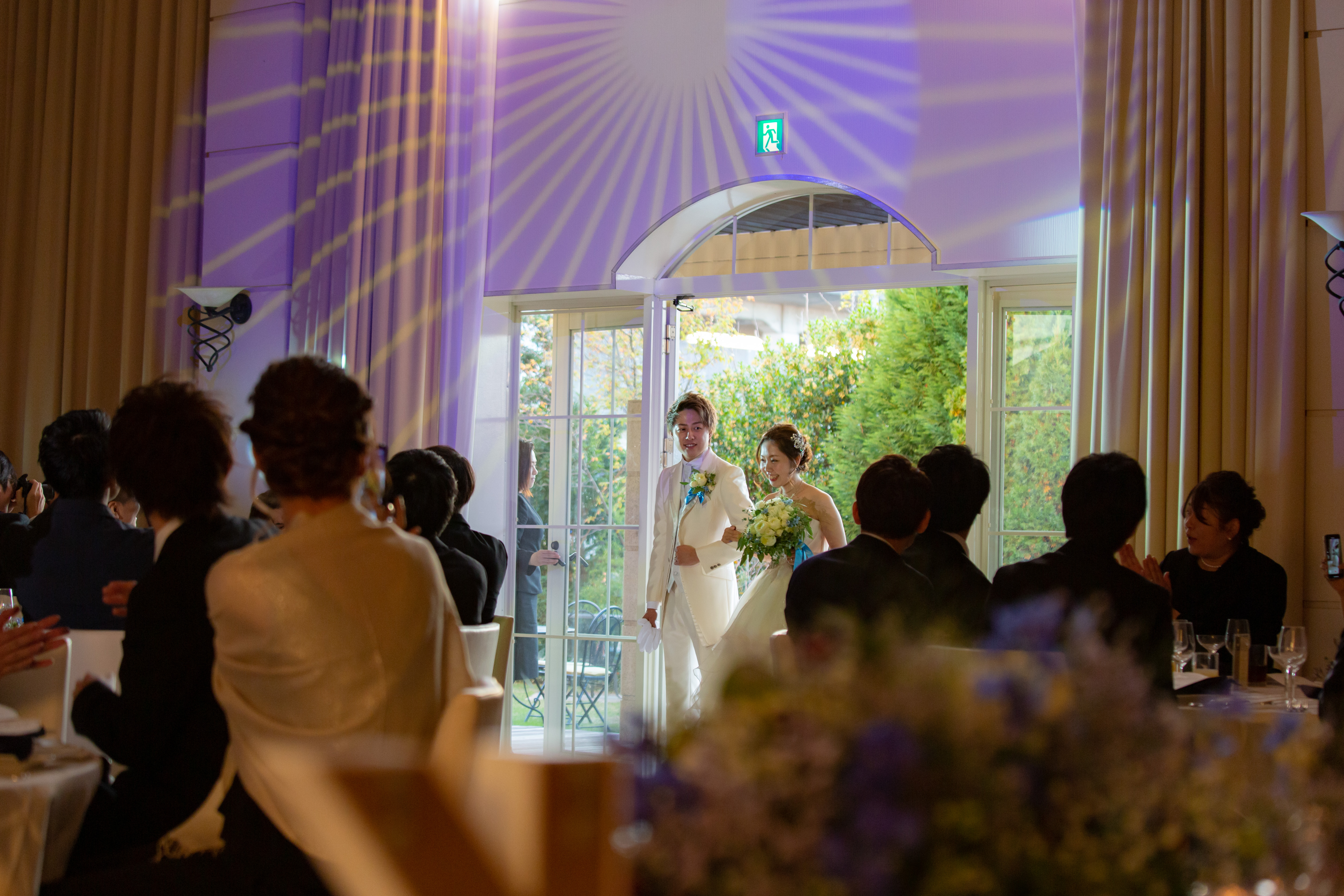 入場後は 新郎新婦様のお姿をゲストの皆様に お近くで 見て頂けるよう