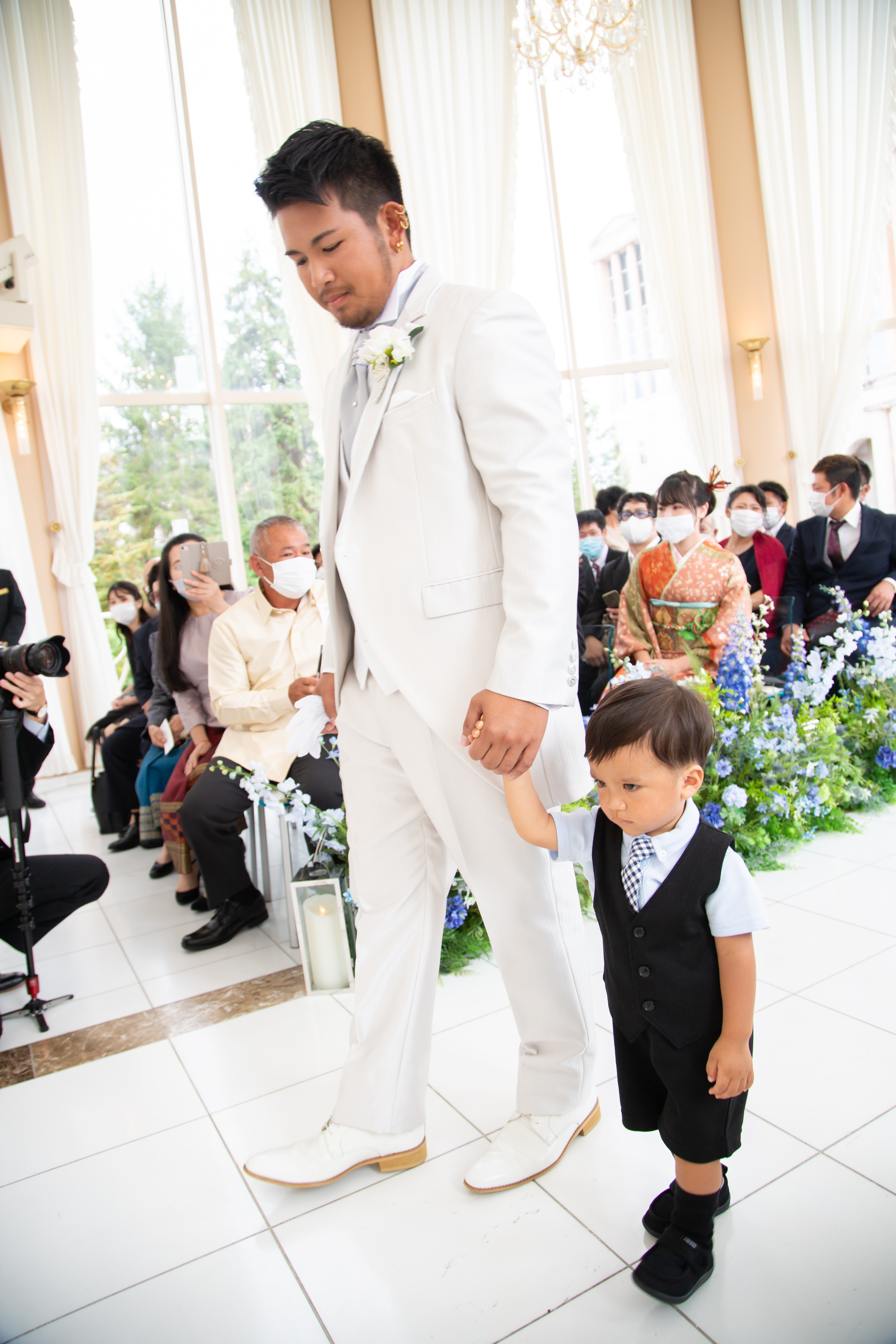 まずは新郎様の入場 今回はお子様とご一緒に入場して頂きました