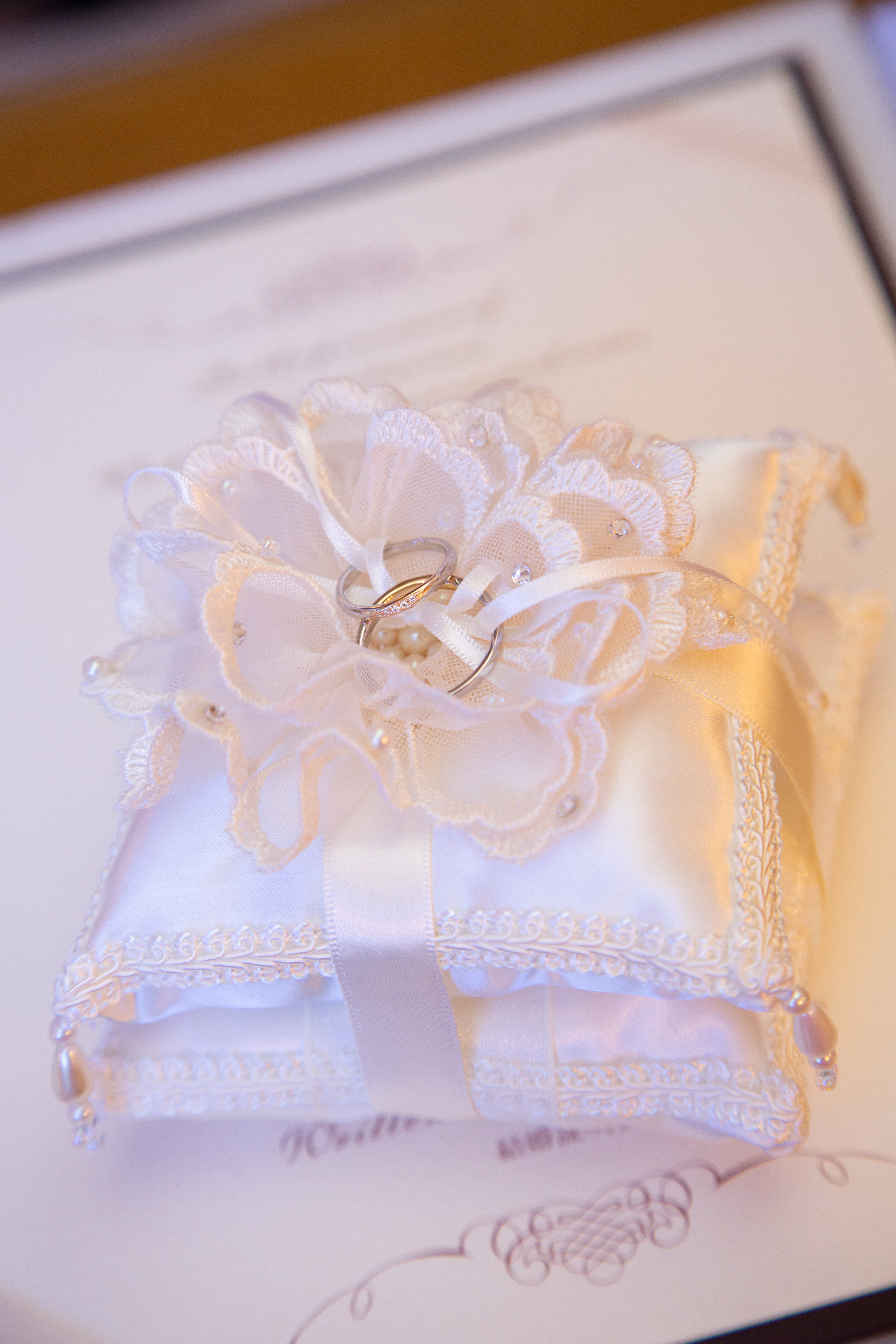 挙式の際 手で指輪を触ることがないようにとリングピローが作られました