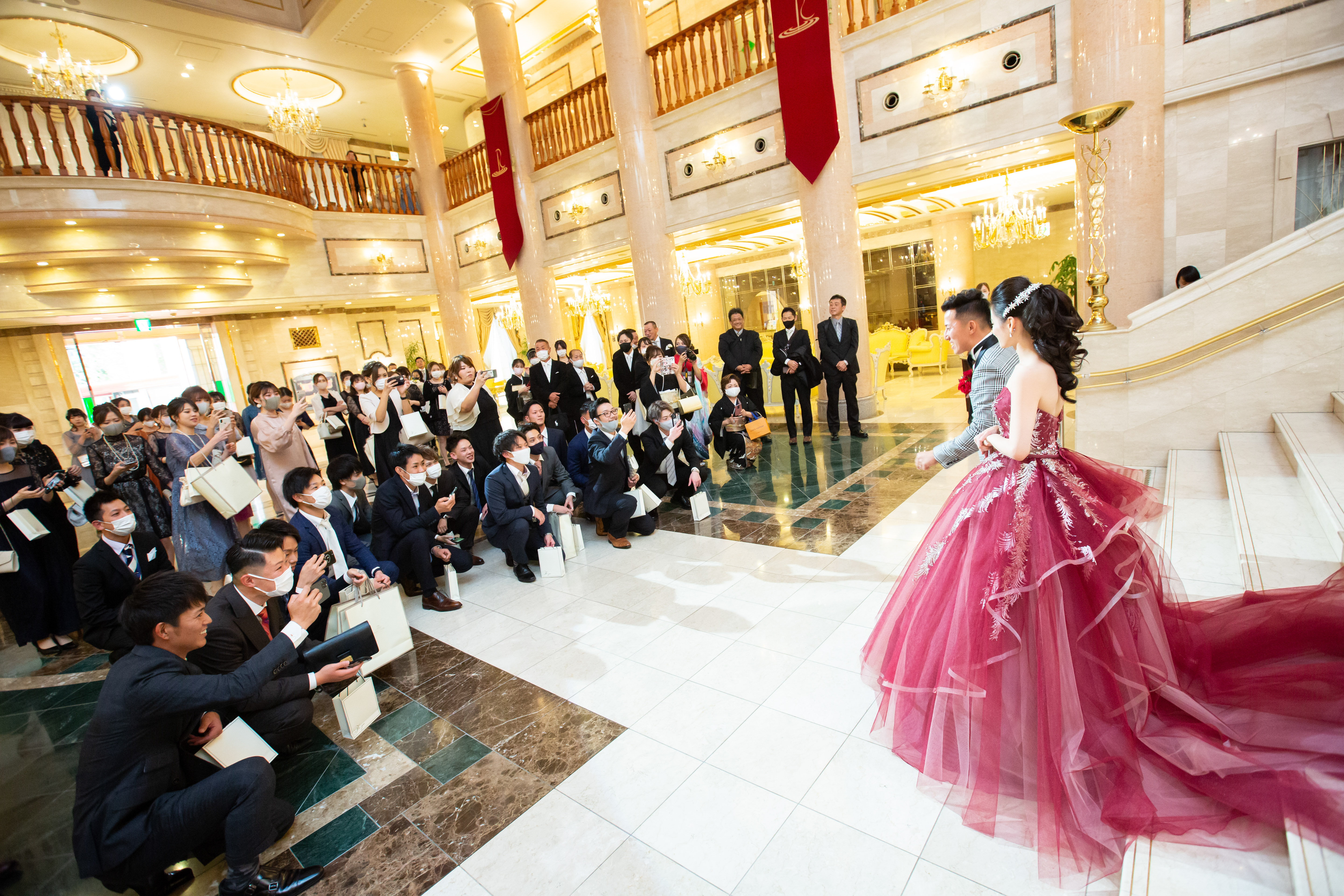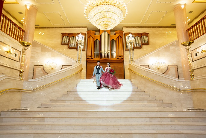 大理石で作られた大階段から新郎新婦様がご登場されるセレモニーです
