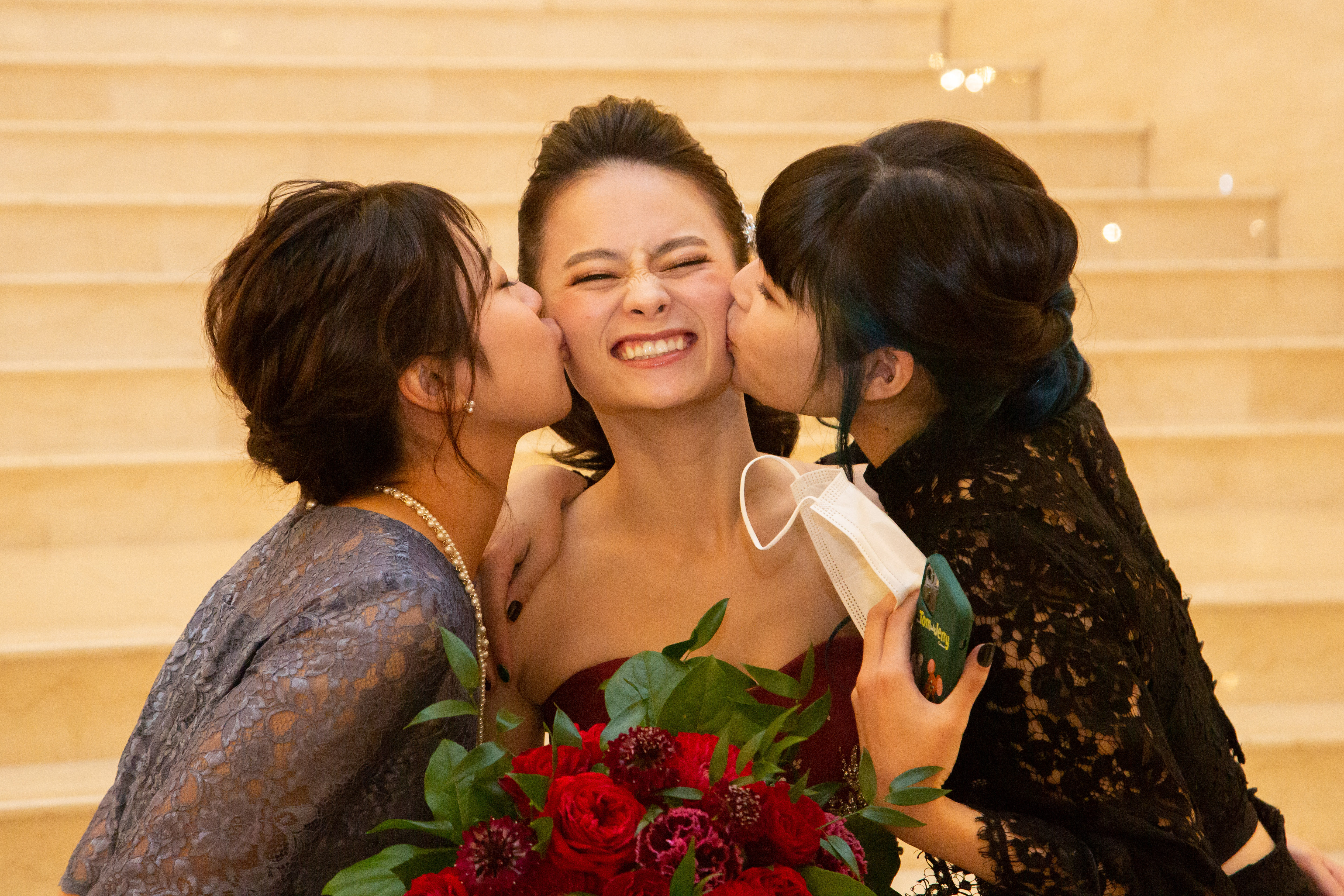 階段下にはゲストの皆様がカメラを用意してお待ちくださっています