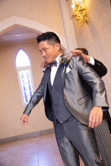 【ジャケットセレモニー】で新郎様の最後のお支度をしてみてはいかがでしょうか♪