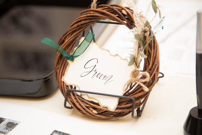 受付には 新郎新婦様どちらの受付かわかりやすいよう