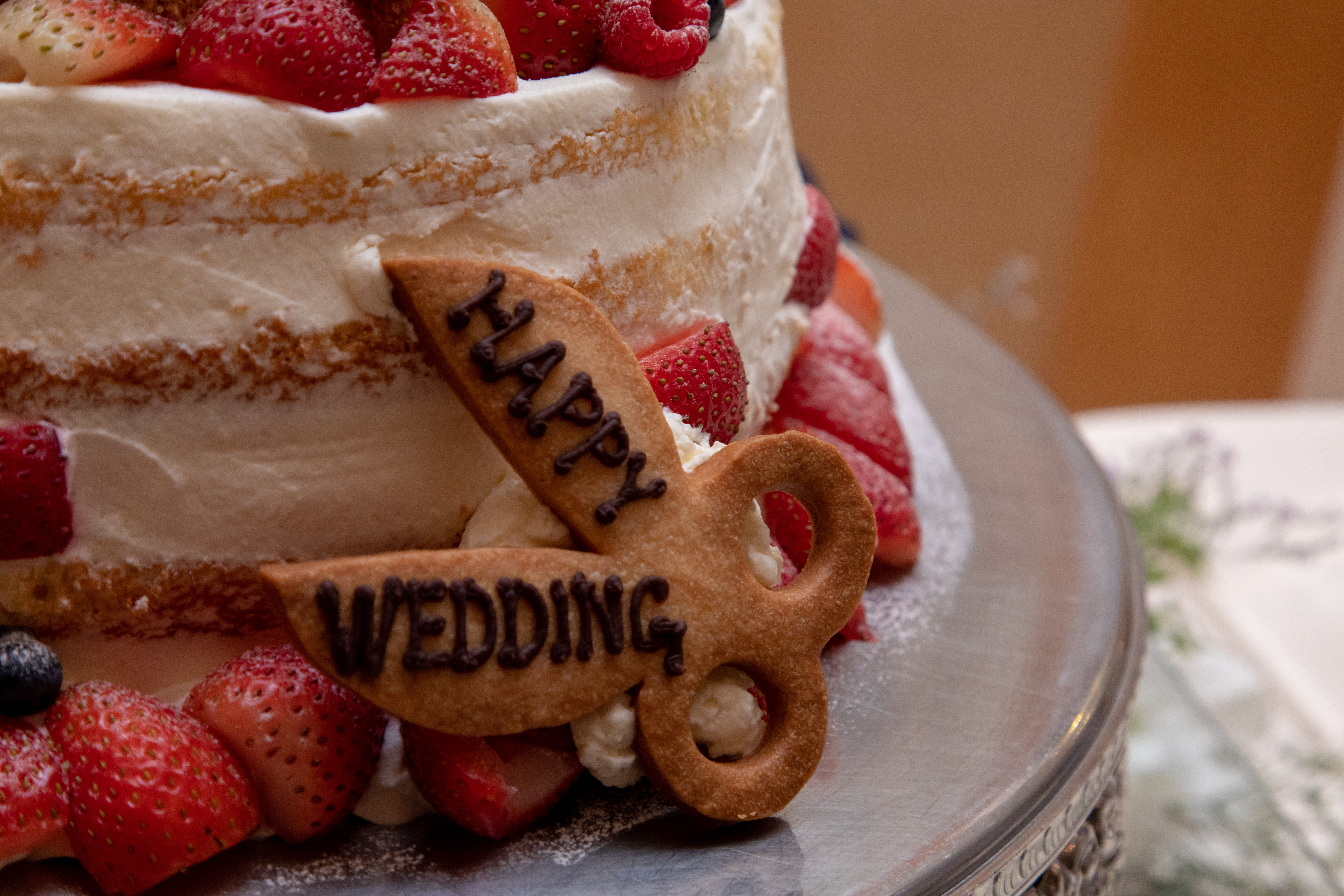 お二人の職業にちなんでハサミのクッキーで飾り付け☆彡