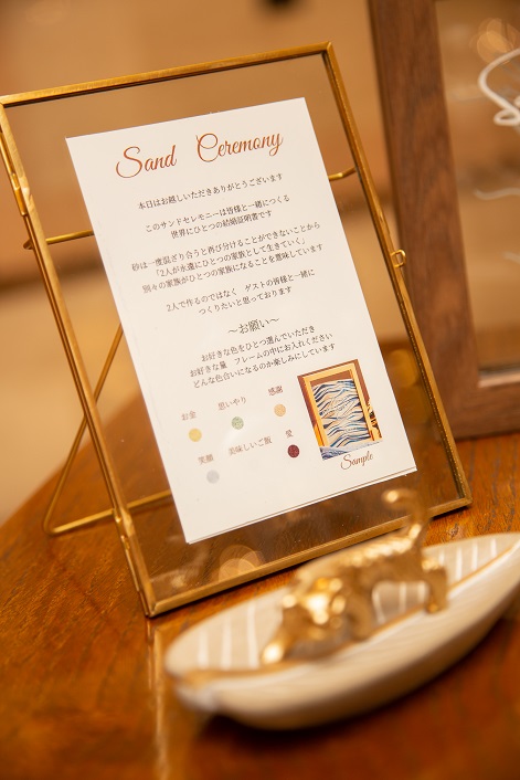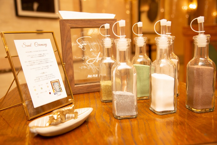 ウェルカムスペースに サンドセレモニーで使用する砂をおき