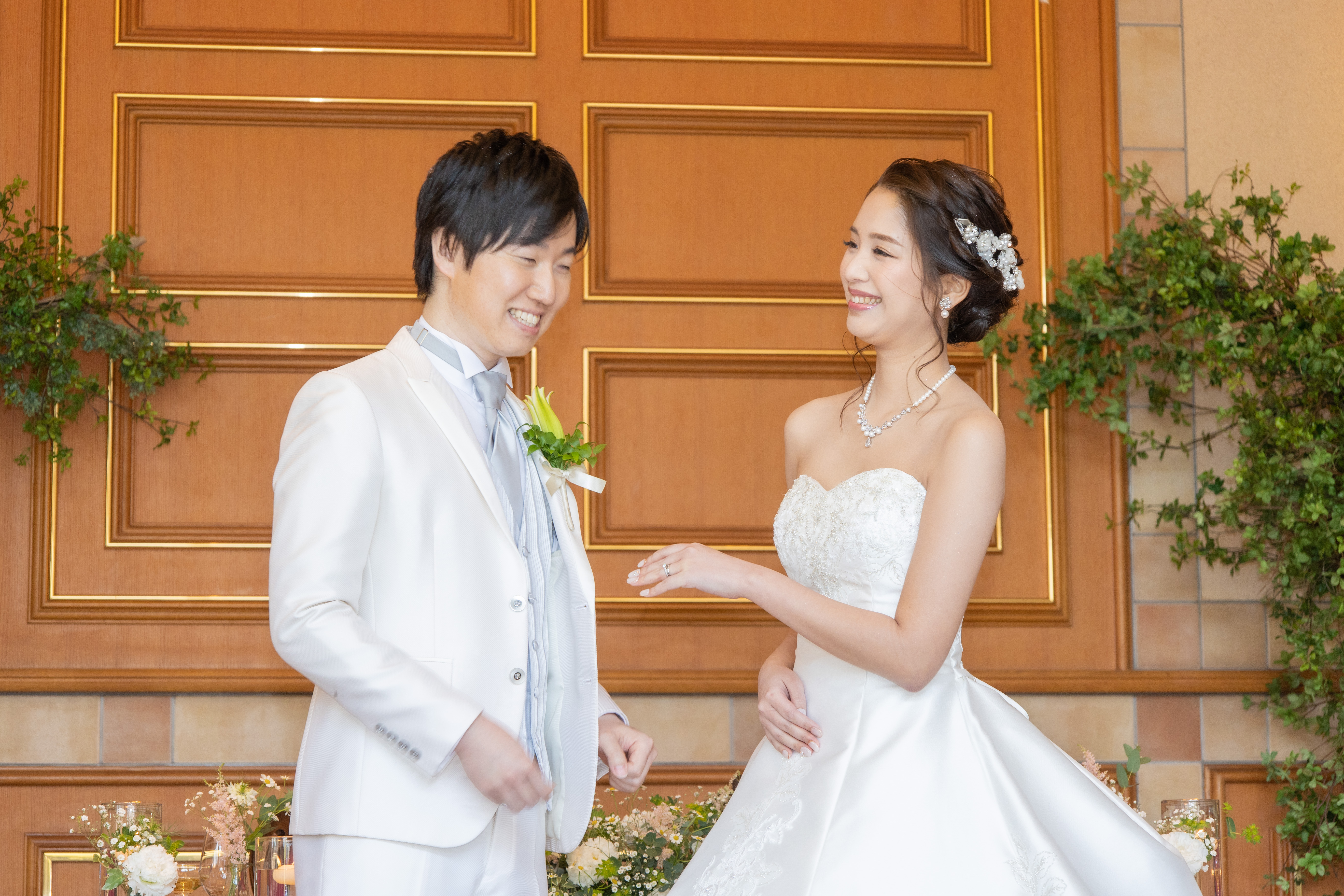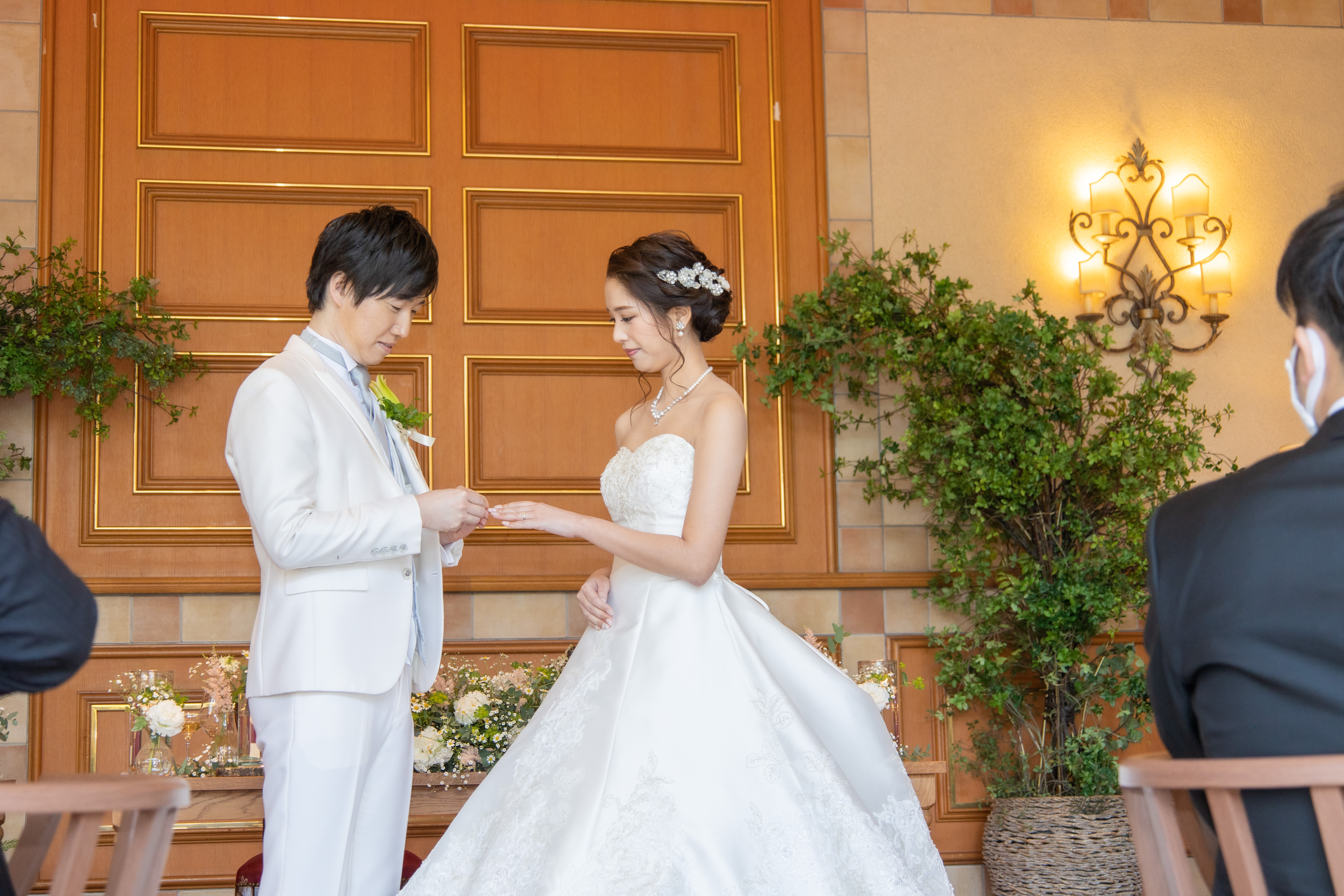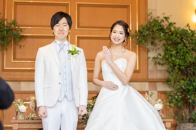 挙式中に結婚指輪をお召しになるので