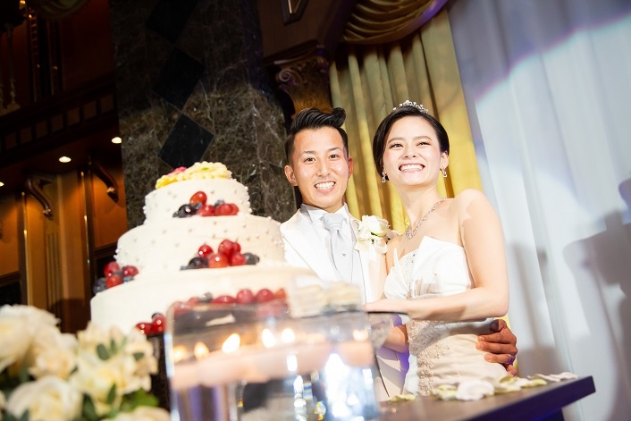 今までの感謝の気持ちを込めて新郎新婦様が ゲストの方にケーキを食べさせてあげる演出♡