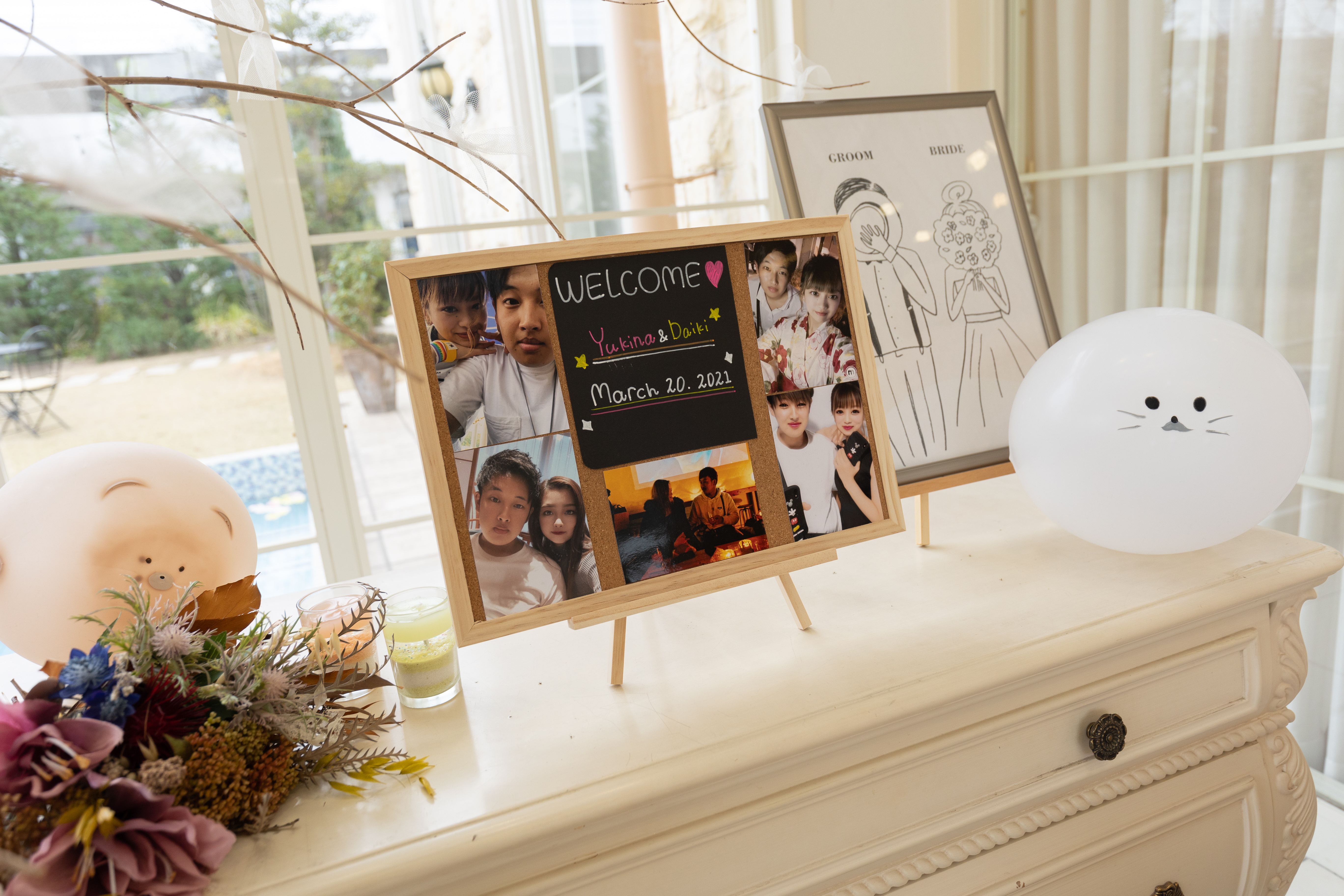 インパクトのあるお二人のウェルカムボードをつくるのも♪