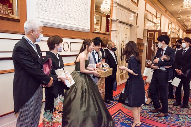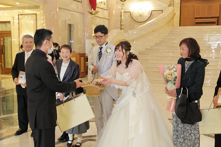 このように御披露宴会場前でお渡しすることも