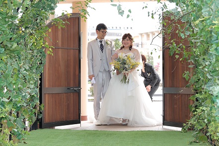 お二人がガーデンのアーチから入場すると・・・