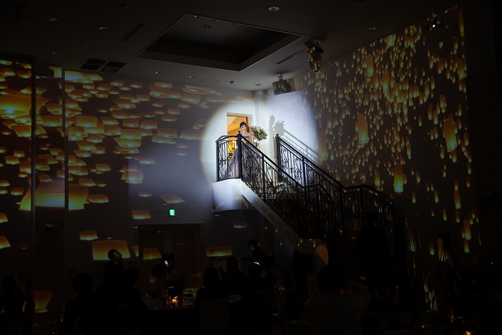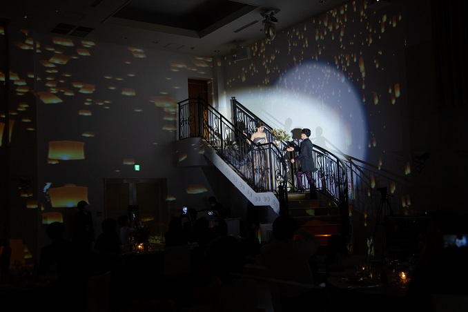 新婦様の入場と同時にランタンのマッピングを使用し