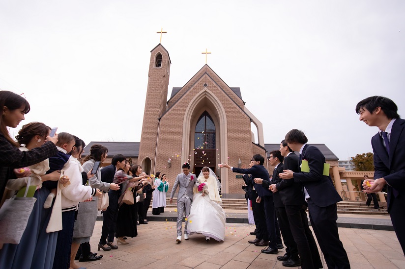 ゲストの皆様が新郎新婦様にフラワーをかけてお祝いすることです