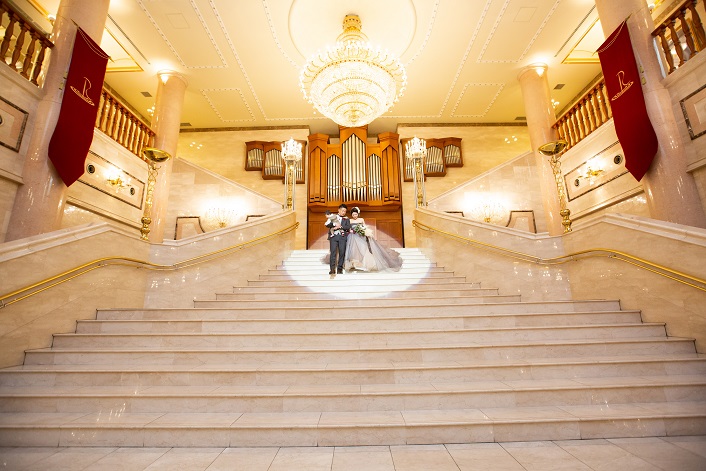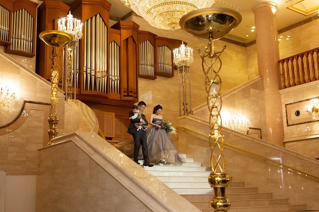 そんな大階段を御披露宴後に 新郎新婦様にくだっていただき
