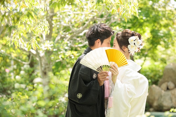 自然豊かな中なので白無垢と言われる真っ白なお衣裳でも