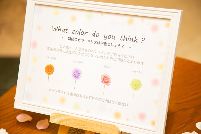 新婦様のお色直しのドレスのお色を当てて頂くクイズのことです