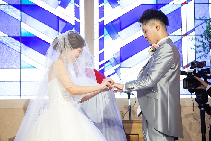 挙式の中で お二人の大切な結婚指輪を