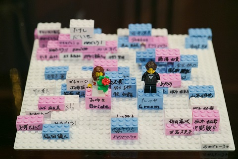 ゲストの皆さまにお好きな色のブロックにお名前を書いていただき